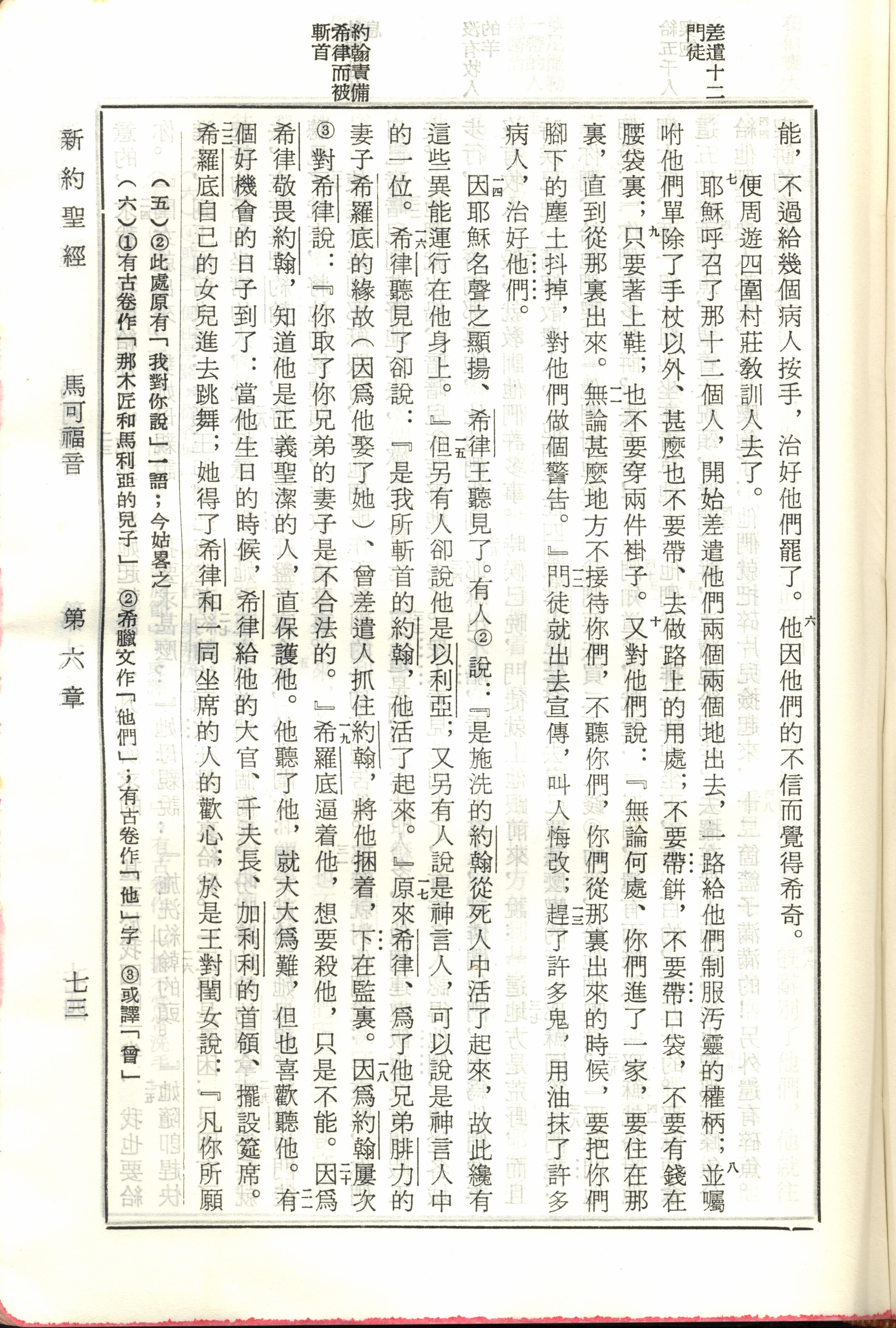 1970年新舊約全書(呂振中譯本) 馬可福音 6 章 6 節到 6 章 22 節