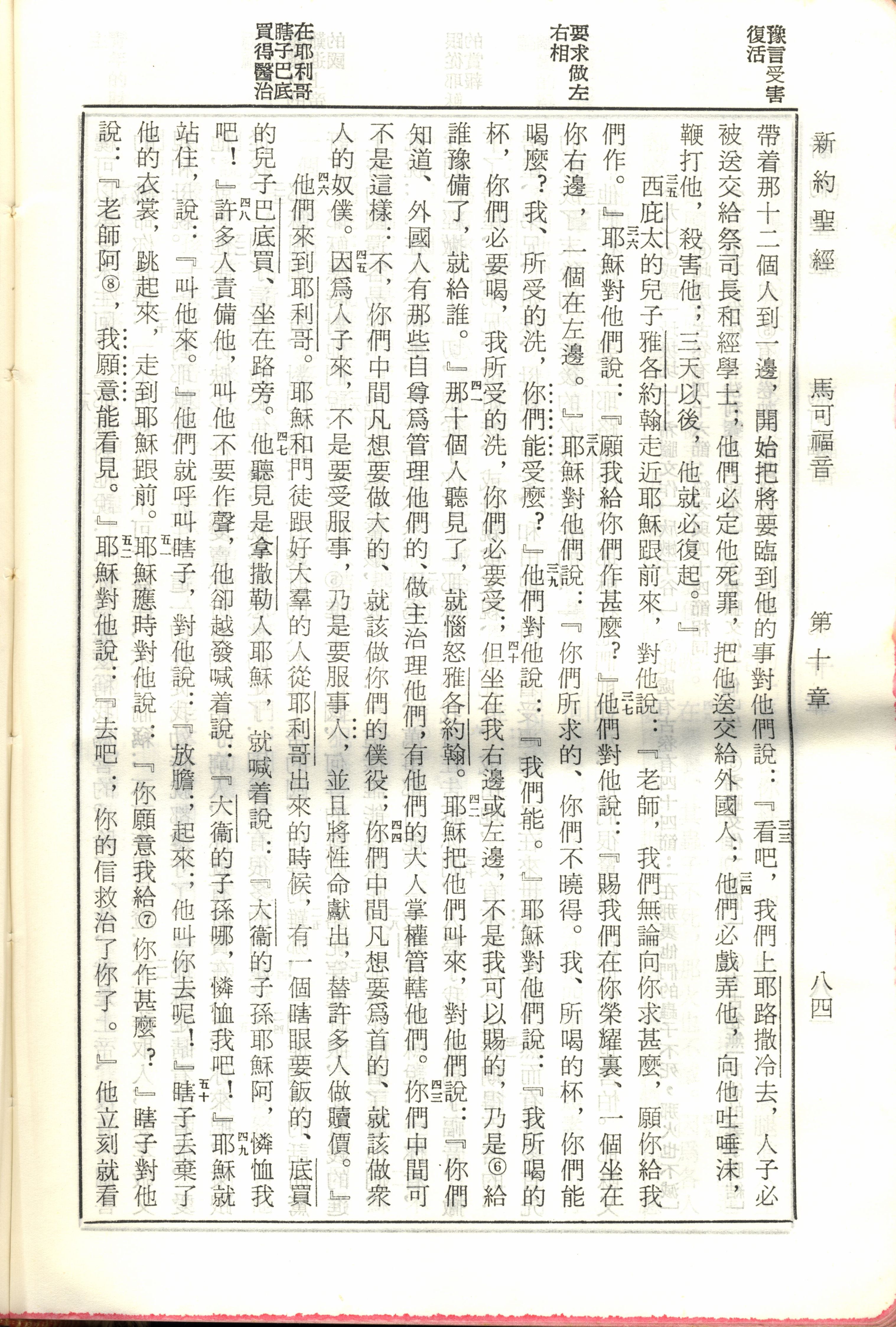 1970年新舊約全書(呂振中譯本) 馬可福音 10 章 33 節到 10 章 52 節