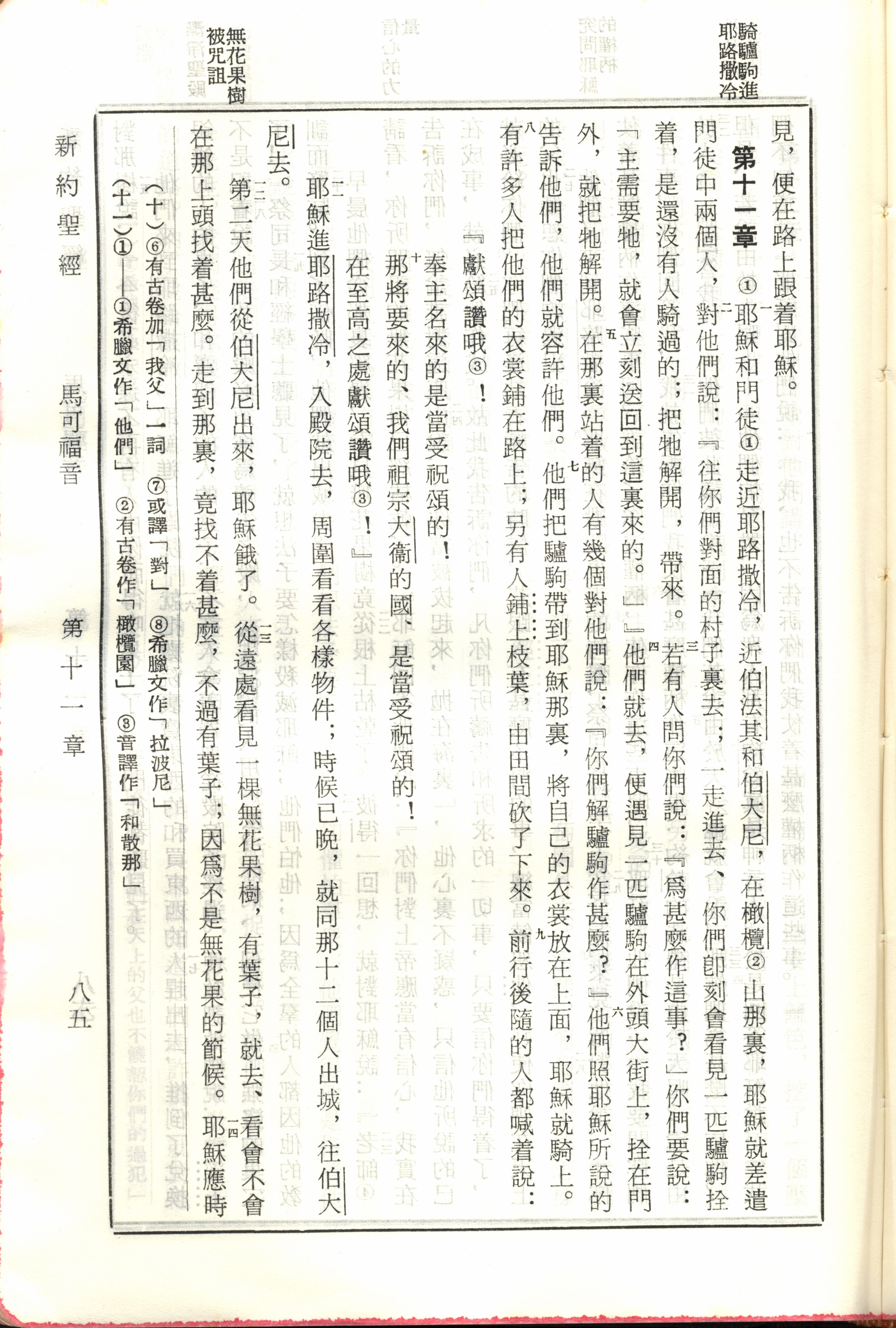 1970年新舊約全書(呂振中譯本) 馬可福音 11 章 1 節到 11 章 14 節
