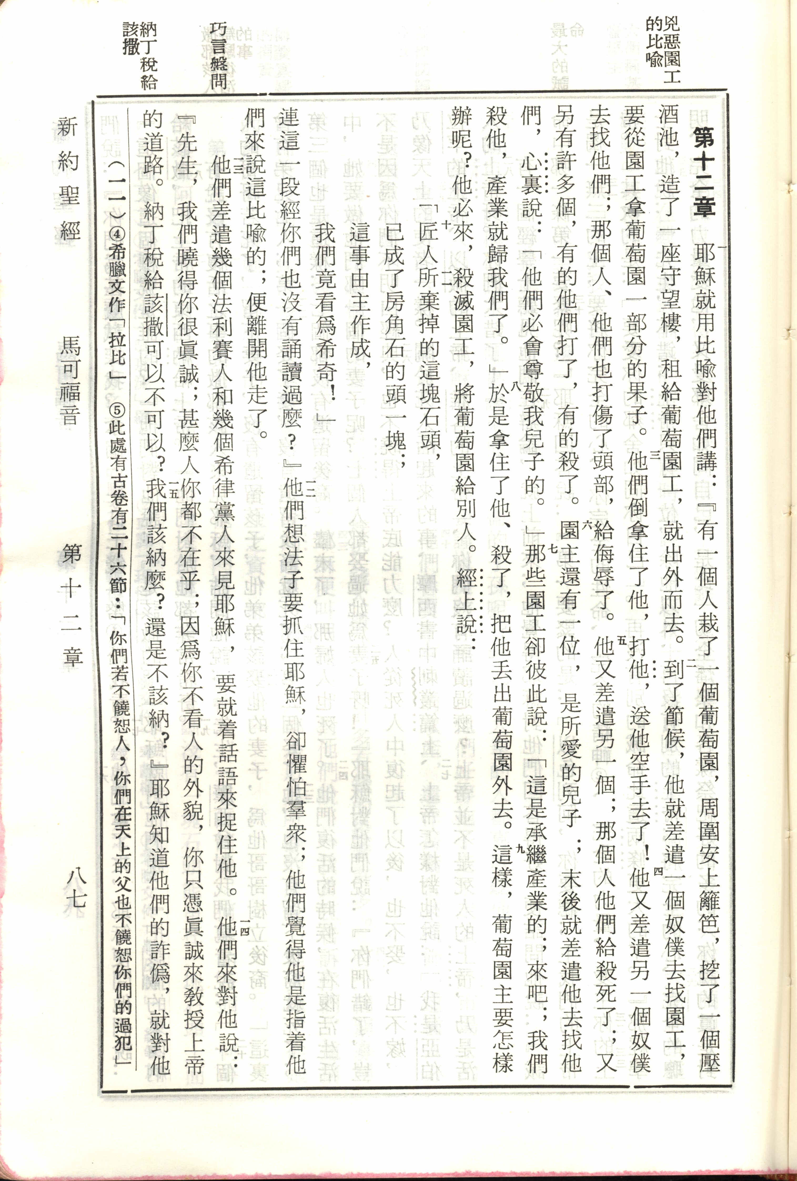 1970年新舊約全書(呂振中譯本) 馬可福音 12 章 1 節到 12 章 15 節