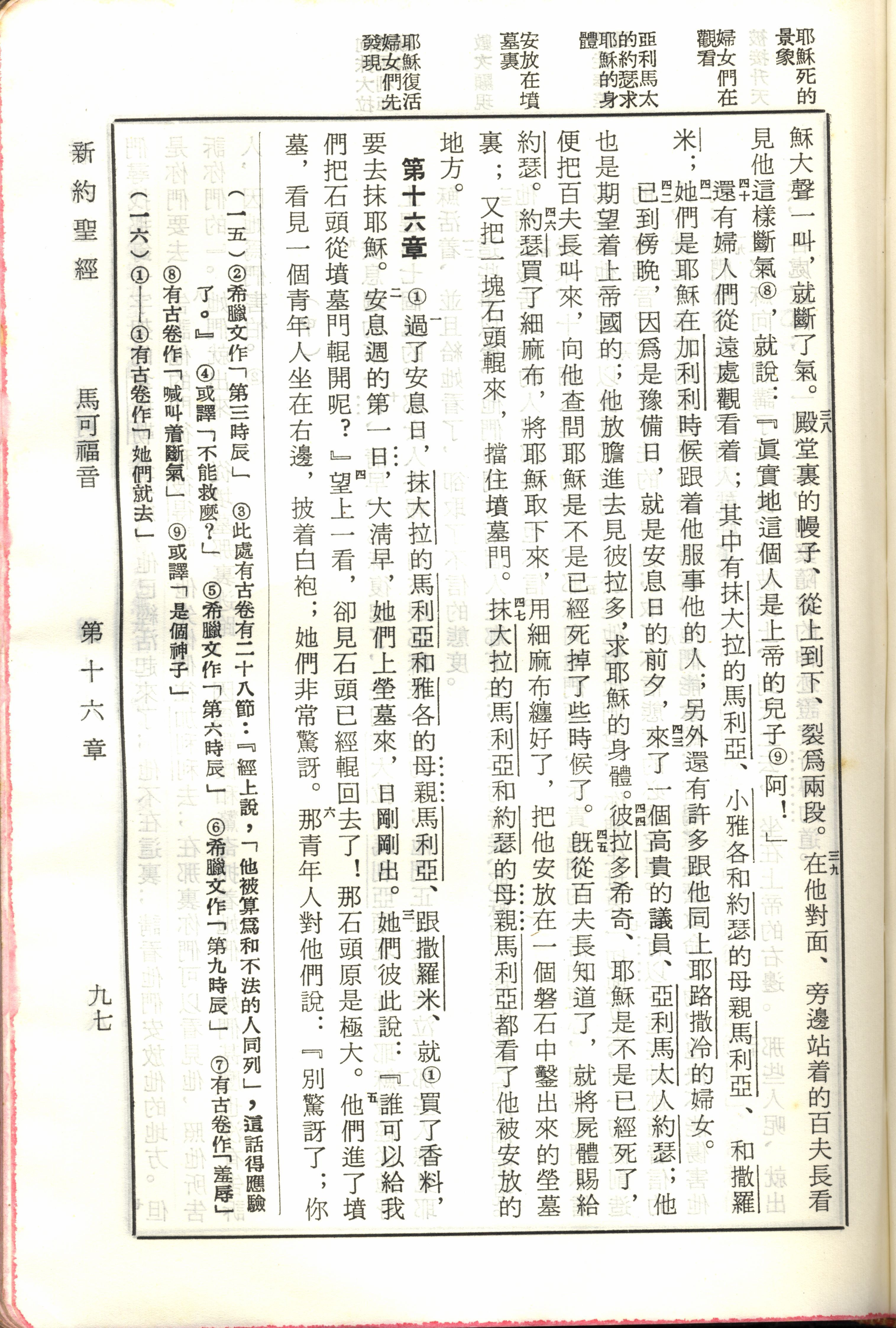 1970年新舊約全書(呂振中譯本) 馬可福音 15 章 38 節到 16 章 6 節