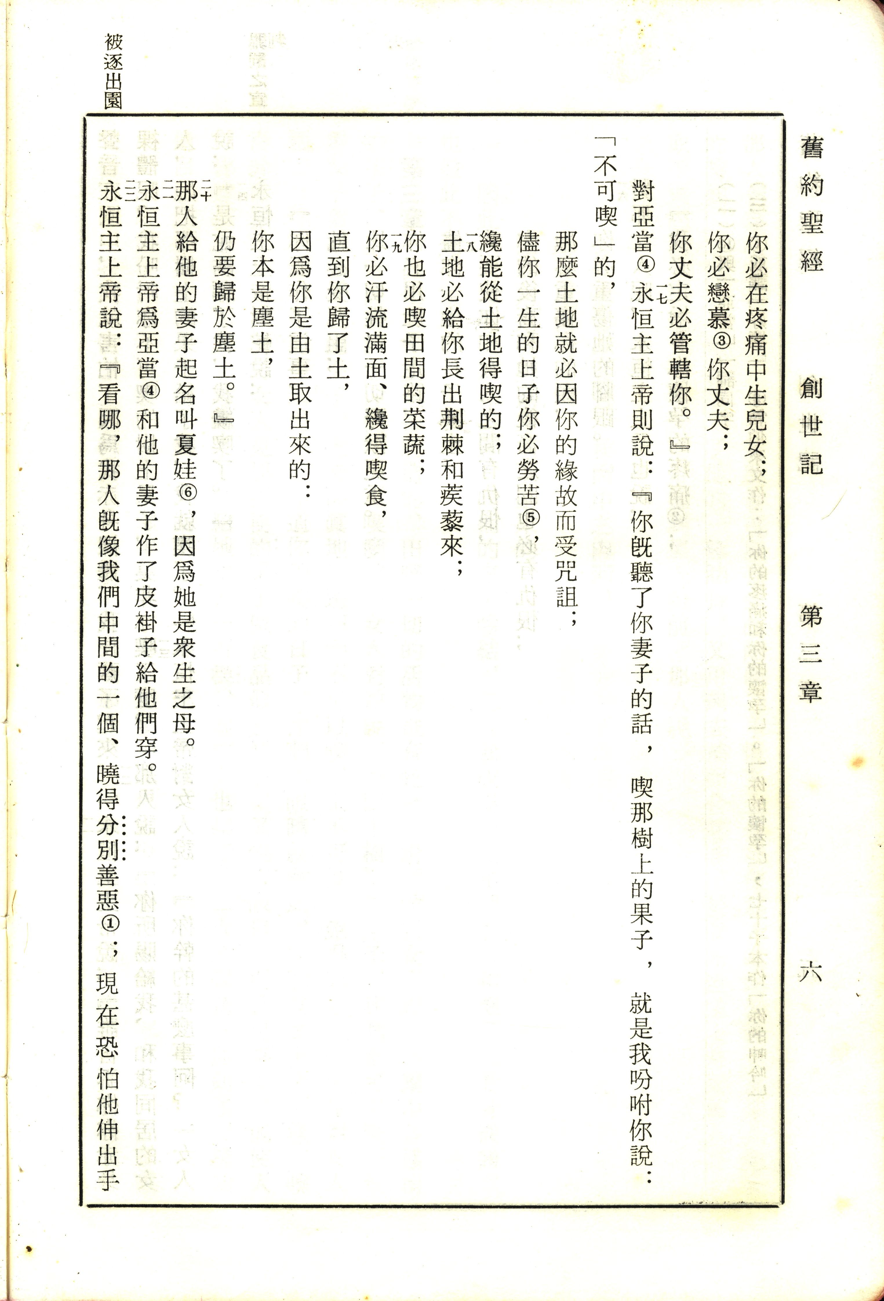 1970年新舊約全書(呂振中譯本) 創世記 3 章 17 節到 3 章 22 節