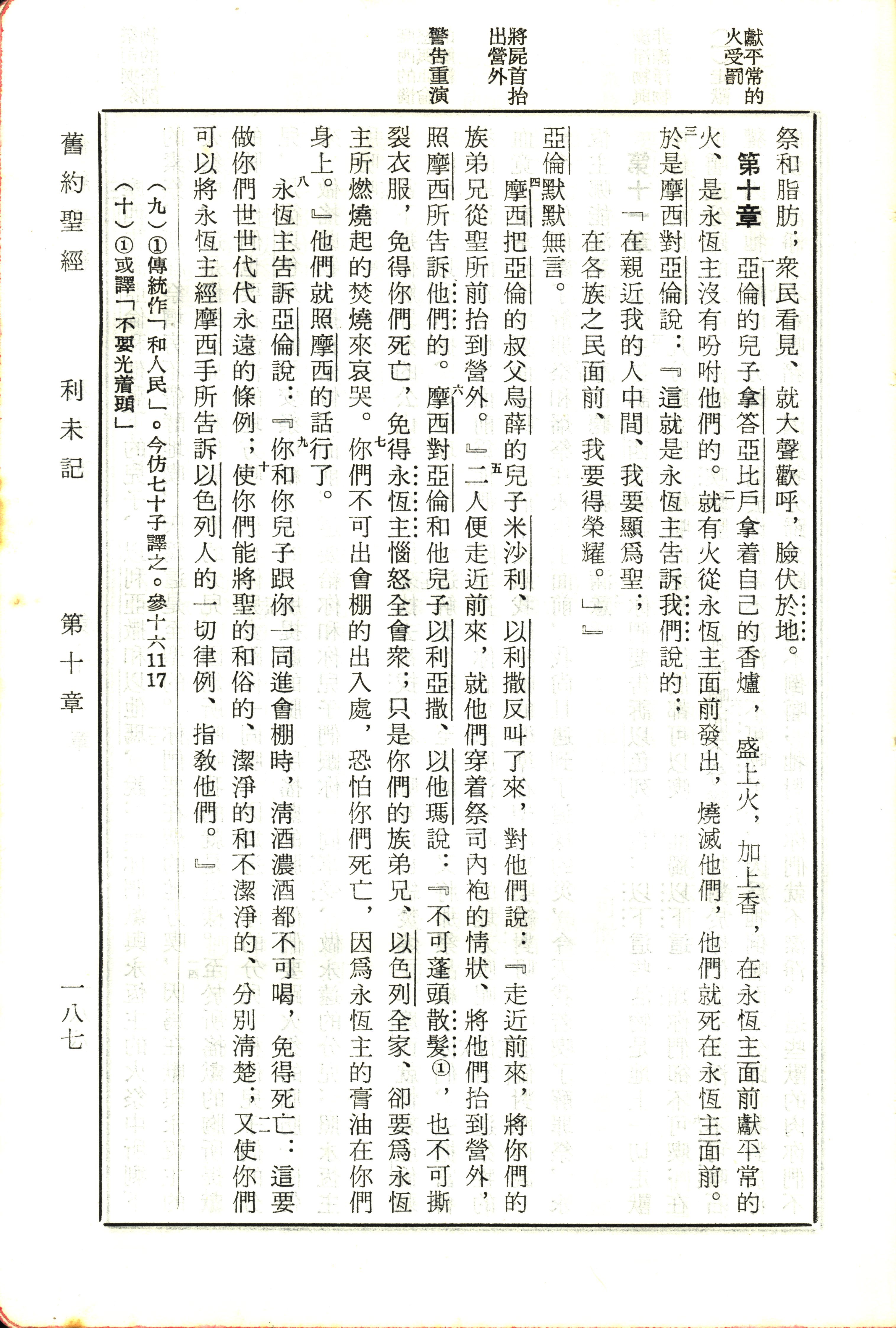 1970年新舊約全書(呂振中譯本) 利未記 10 章 1 節到 10 章 11 節