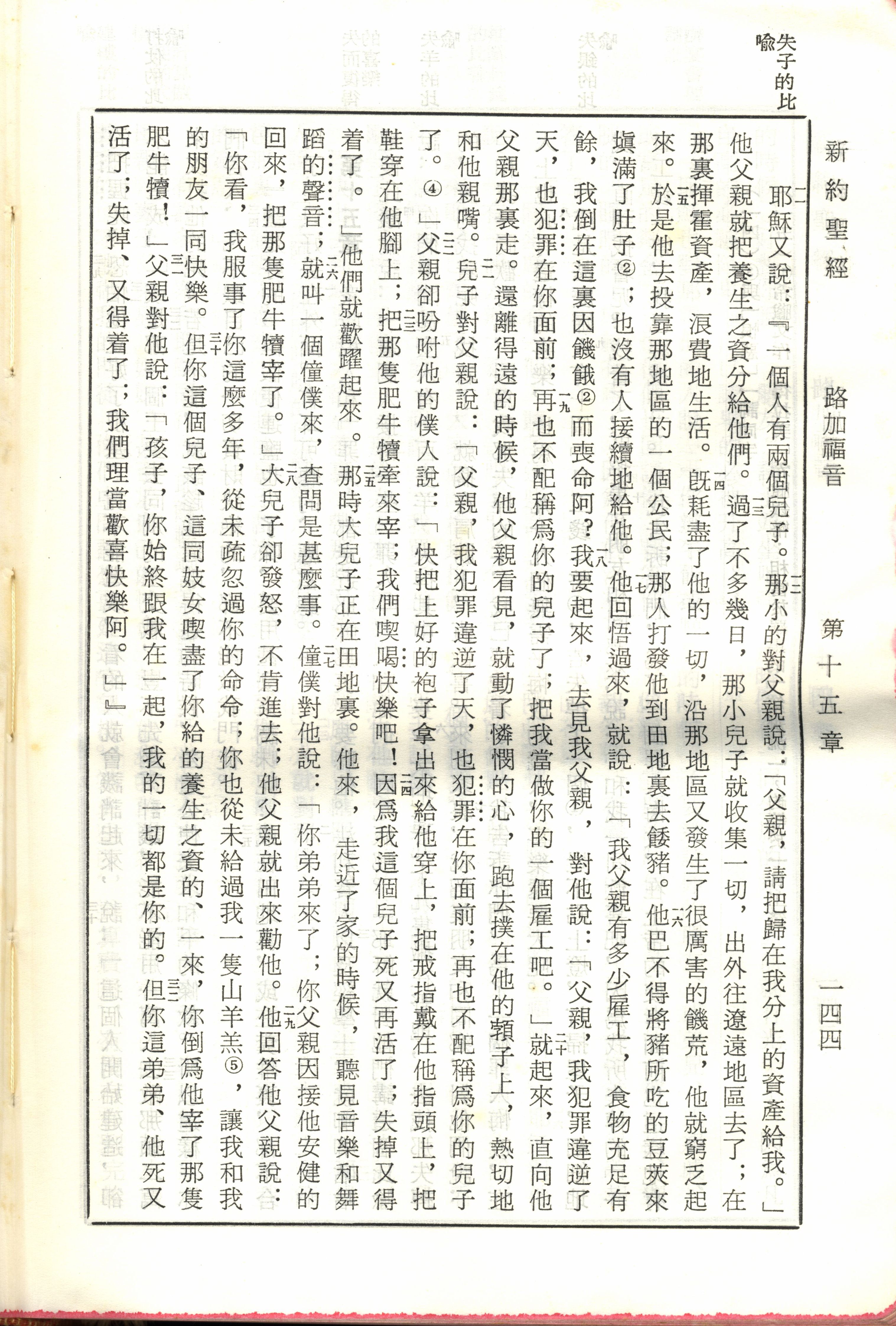1970年新舊約全書(呂振中譯本) 路加福音 15 章 11 節到 15 章 32 節