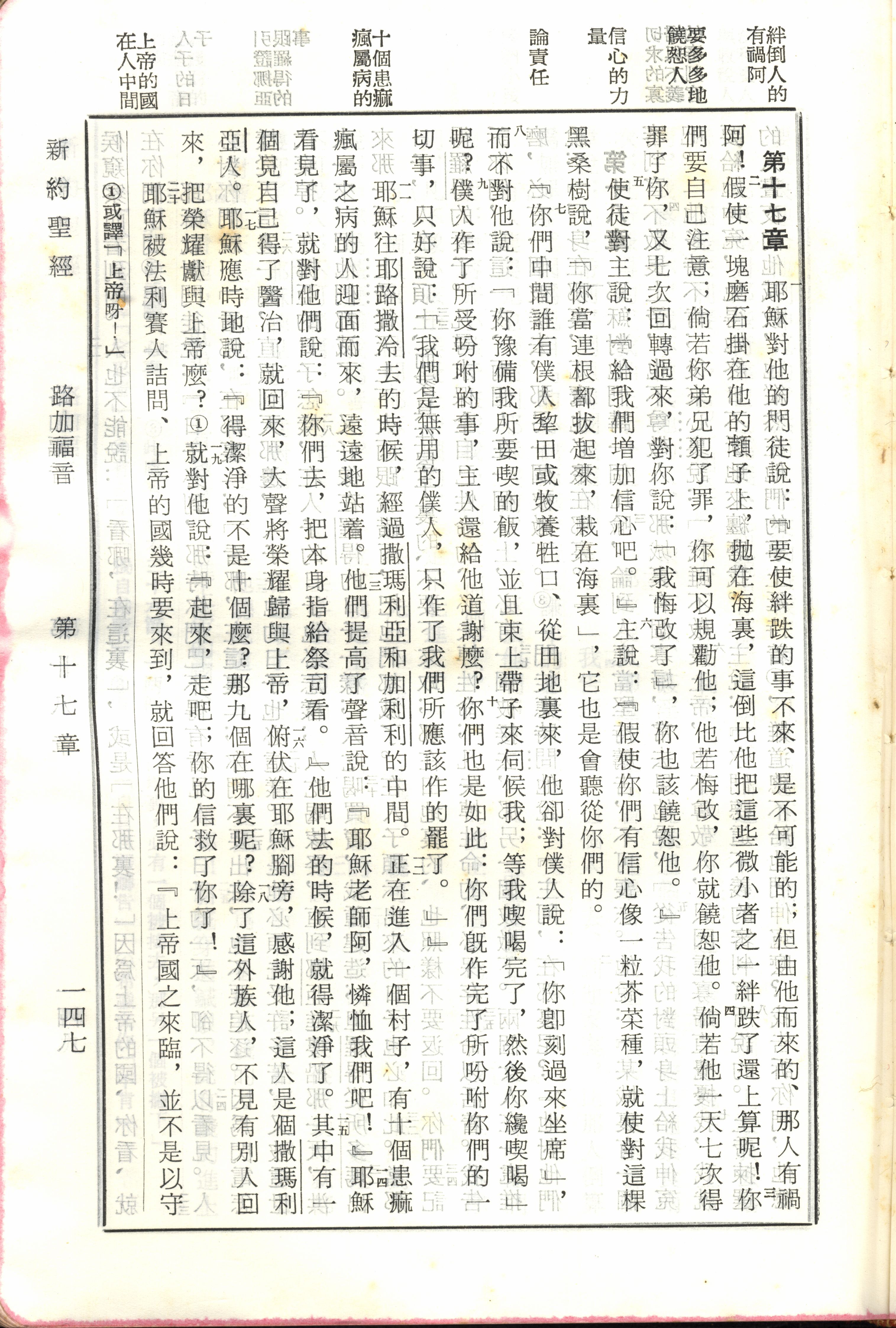 1970年新舊約全書(呂振中譯本) 路加福音 17 章 1 節到 17 章 20 節