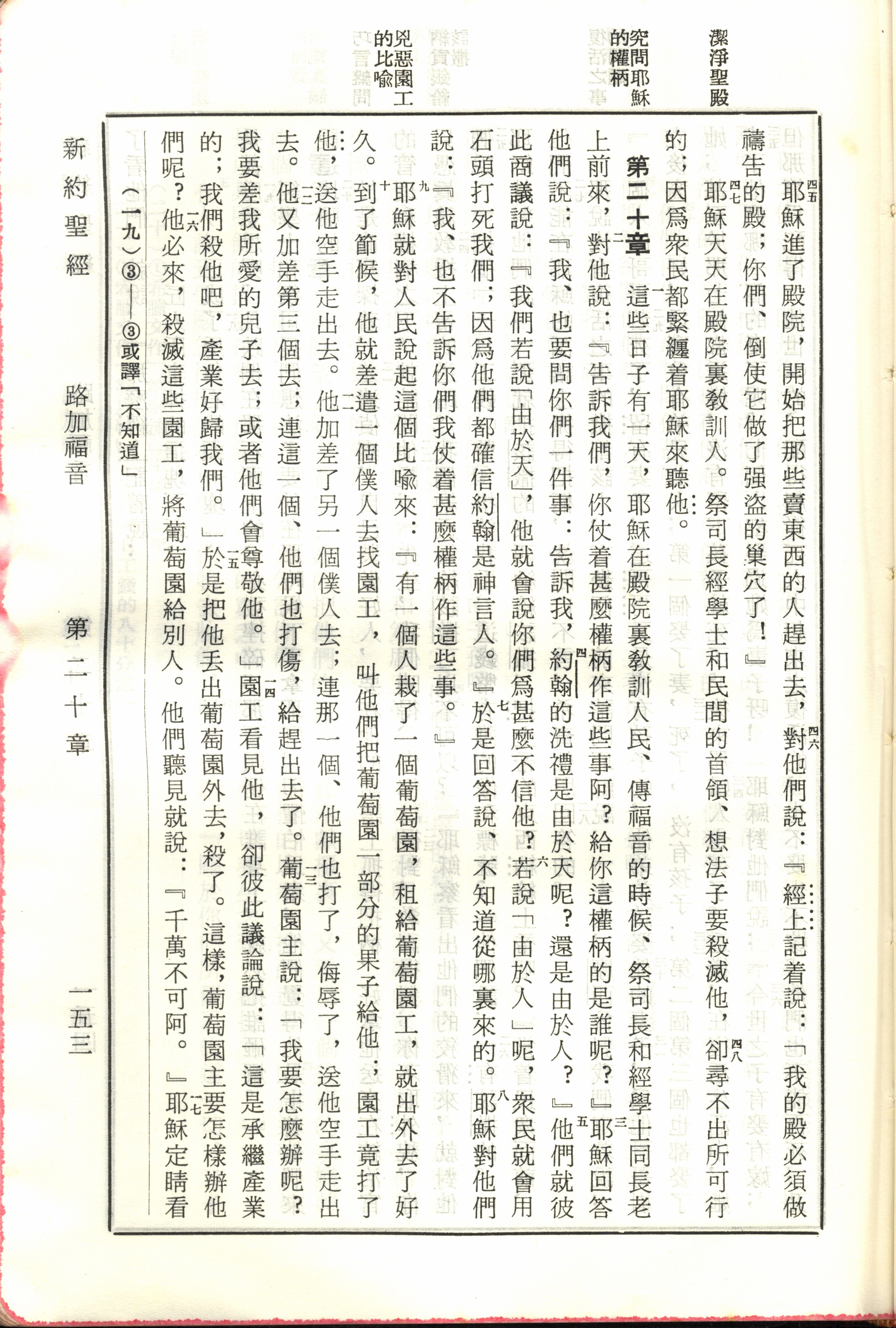 1970年新舊約全書(呂振中譯本) 路加福音 19 章 45 節到 20 章 17 節