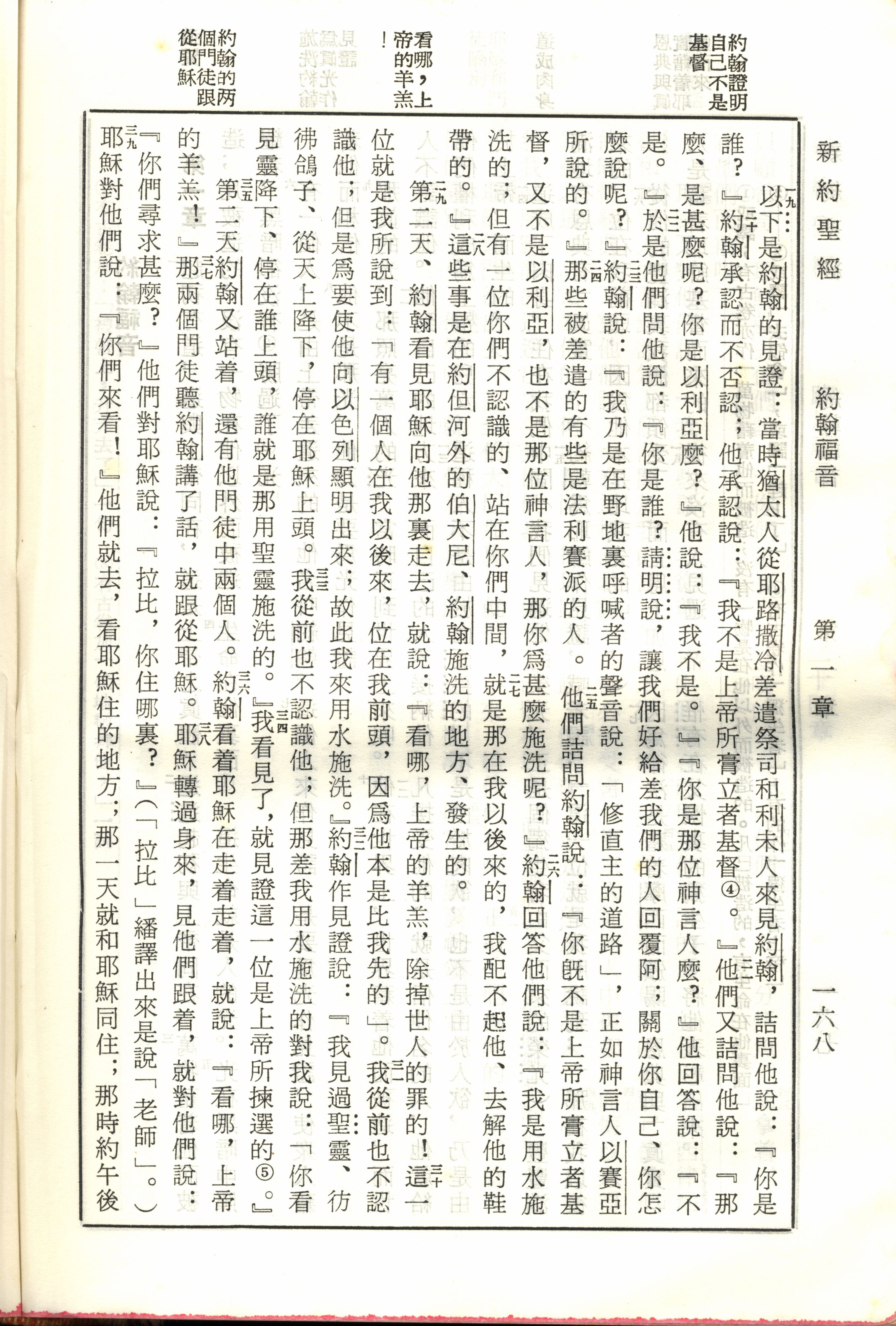 1970年新舊約全書(呂振中譯本) 約翰福音 1 章 19 節到 1 章 39 節