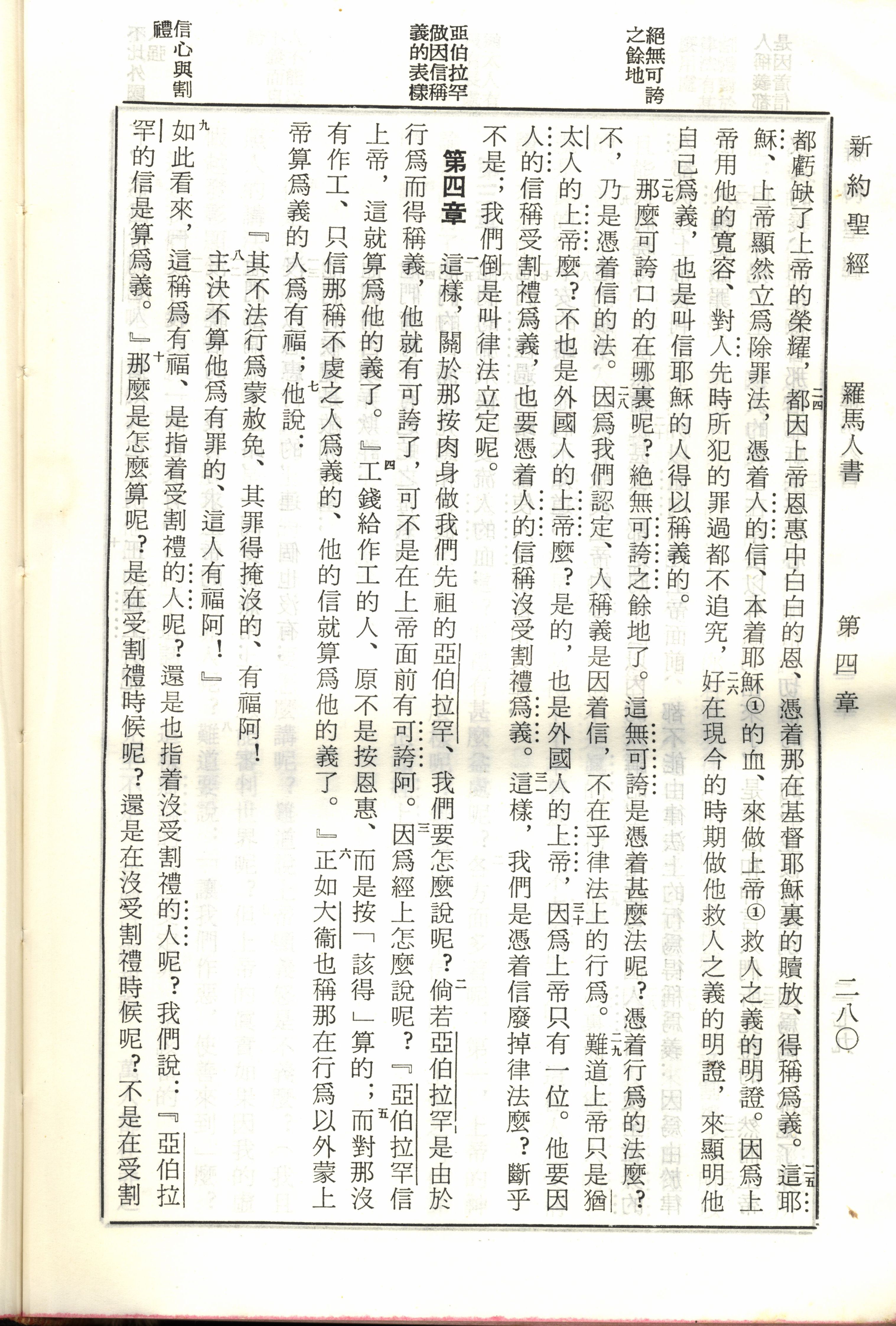 1970年新舊約全書(呂振中譯本) 羅馬書 3 章 24 節到 4 章 10 節