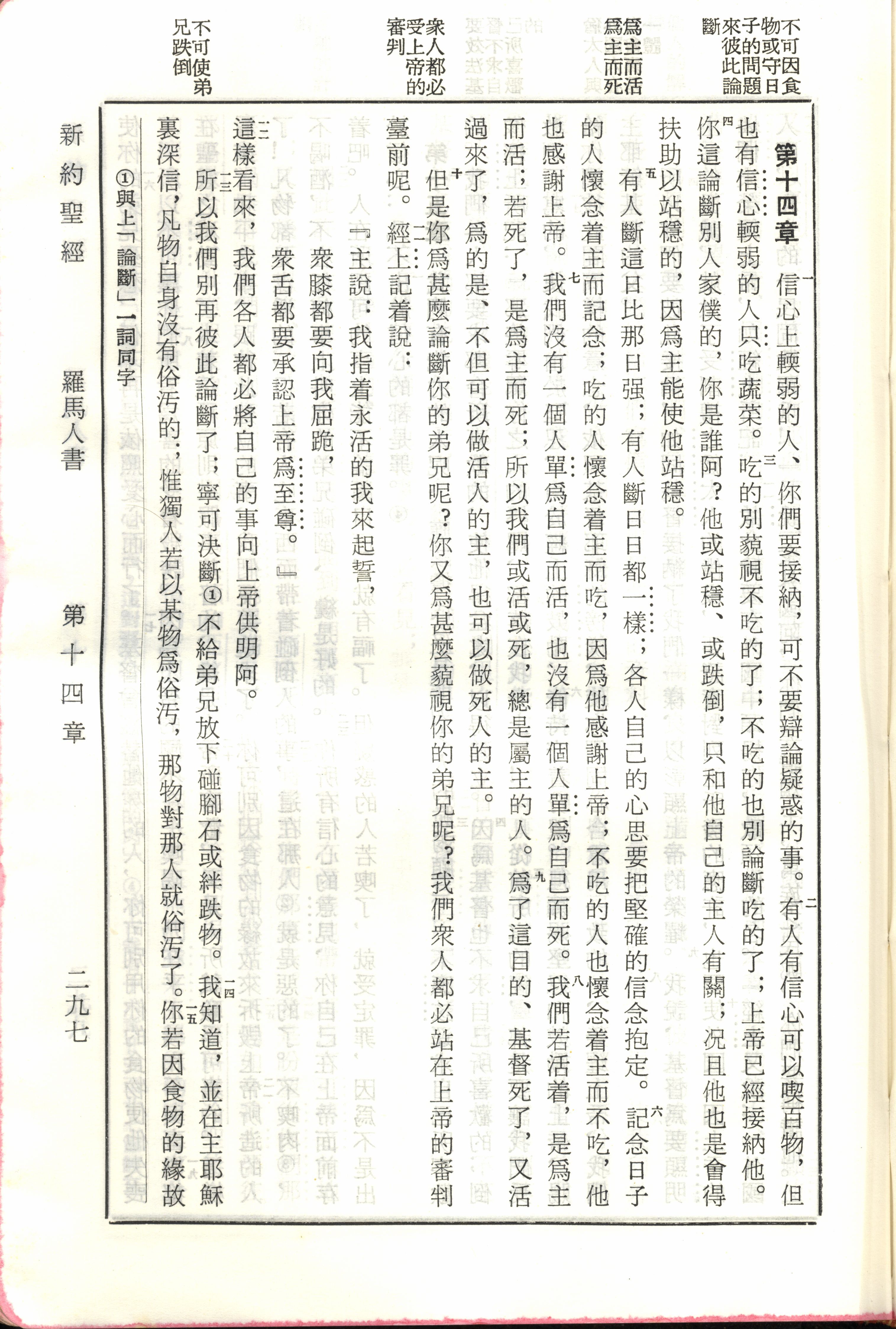 1970年新舊約全書(呂振中譯本) 羅馬書 14 章 1 節到 14 章 15 節
