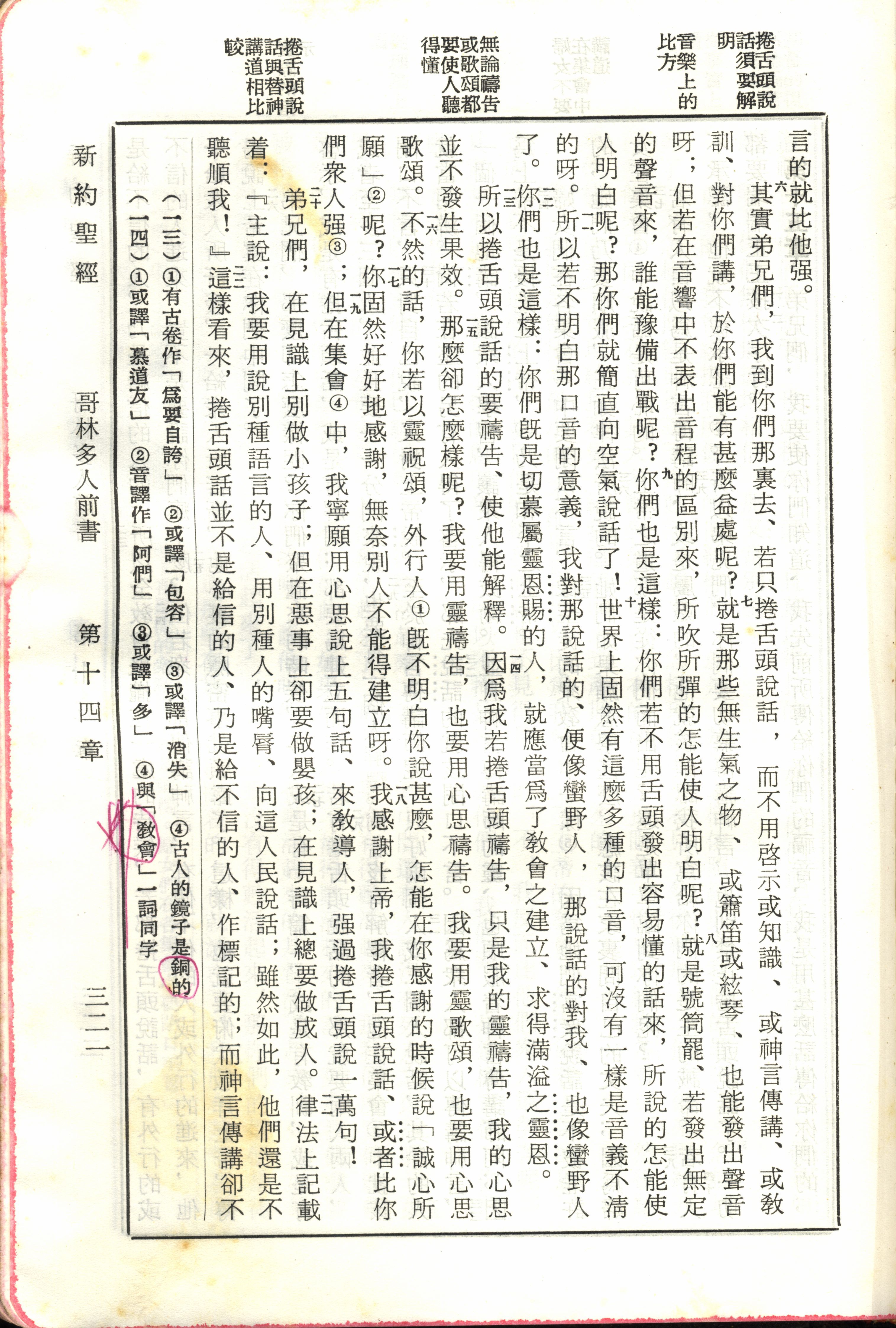 1970年新舊約全書(呂振中譯本) 哥林多前書 14 章 6 節到 14 章 22 節