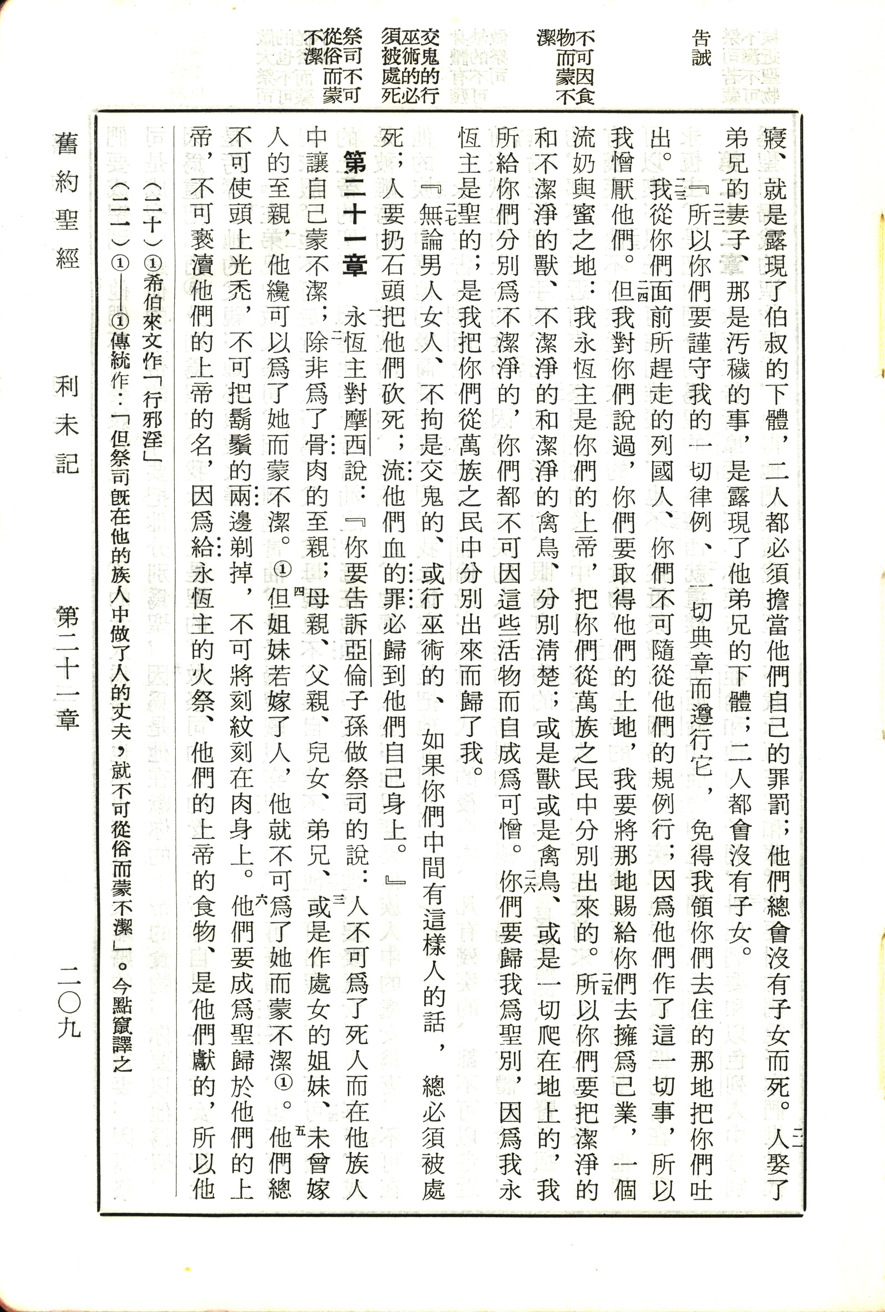 1970年新舊約全書(呂振中譯本) 利未記 20 章 21 節到 21 章 6 節