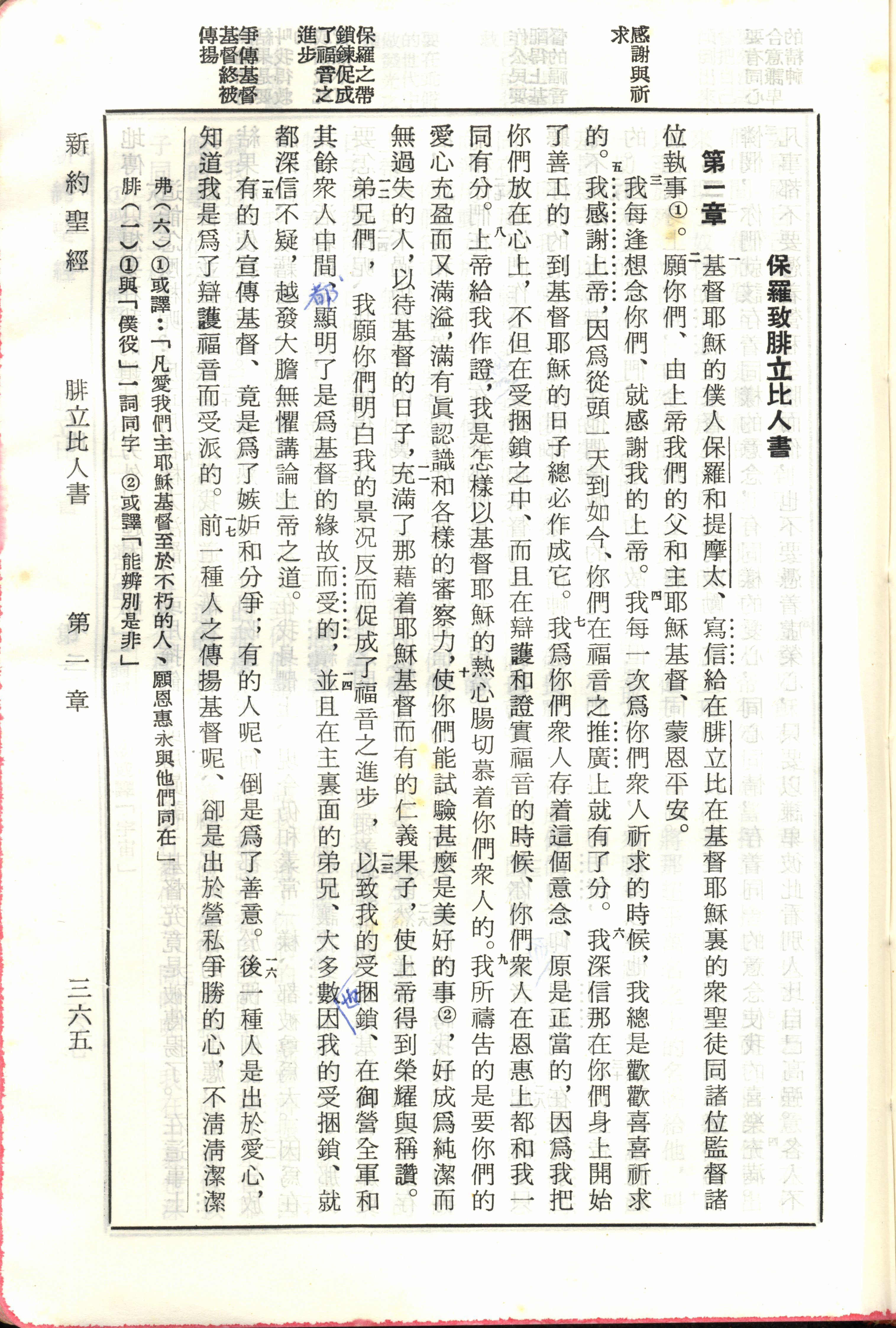 1970年新舊約全書(呂振中譯本) 腓立比書 1 章 1 節到 1 章 17 節
