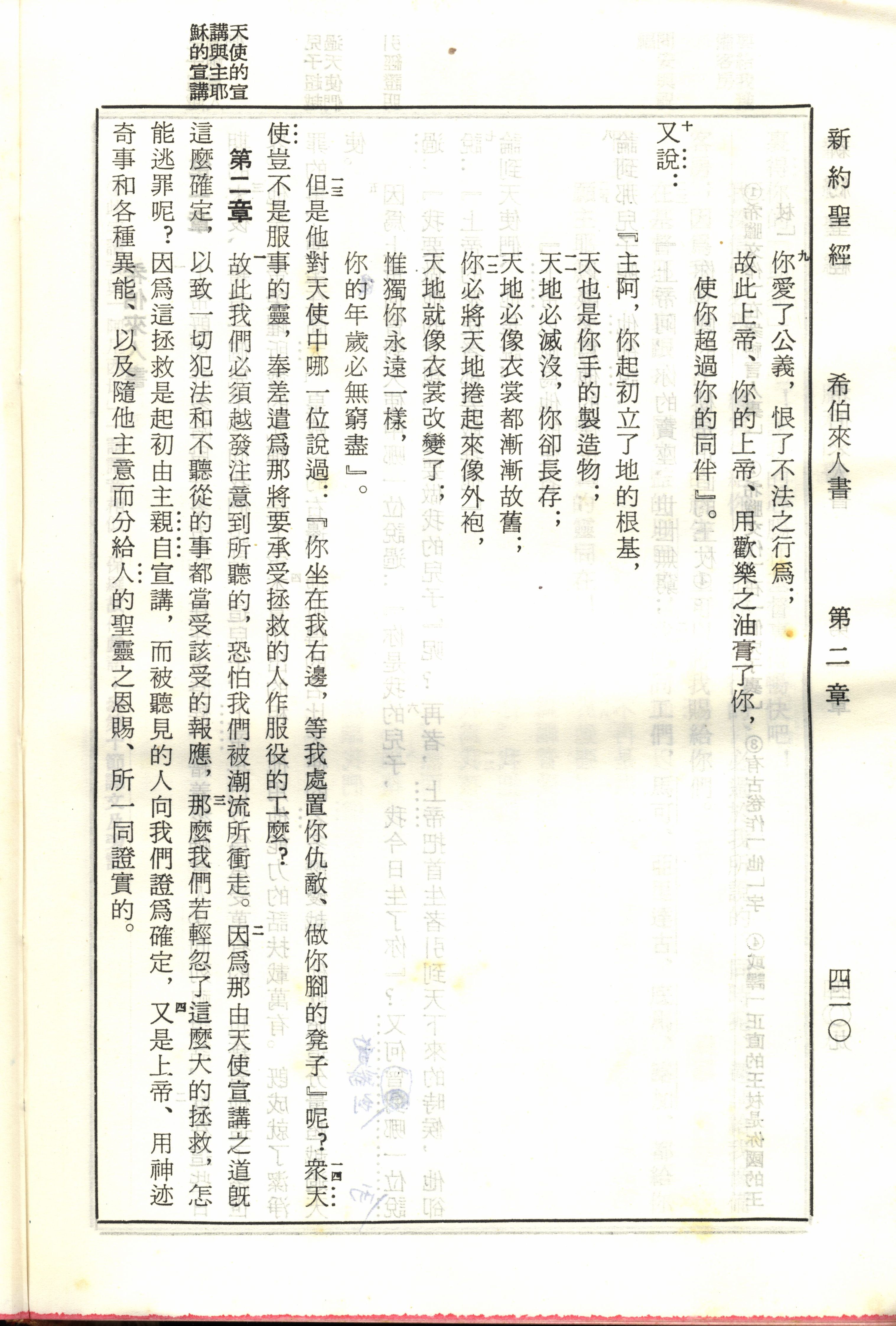 1970年新舊約全書(呂振中譯本) 希伯來書 1 章 9 節到 2 章 4 節