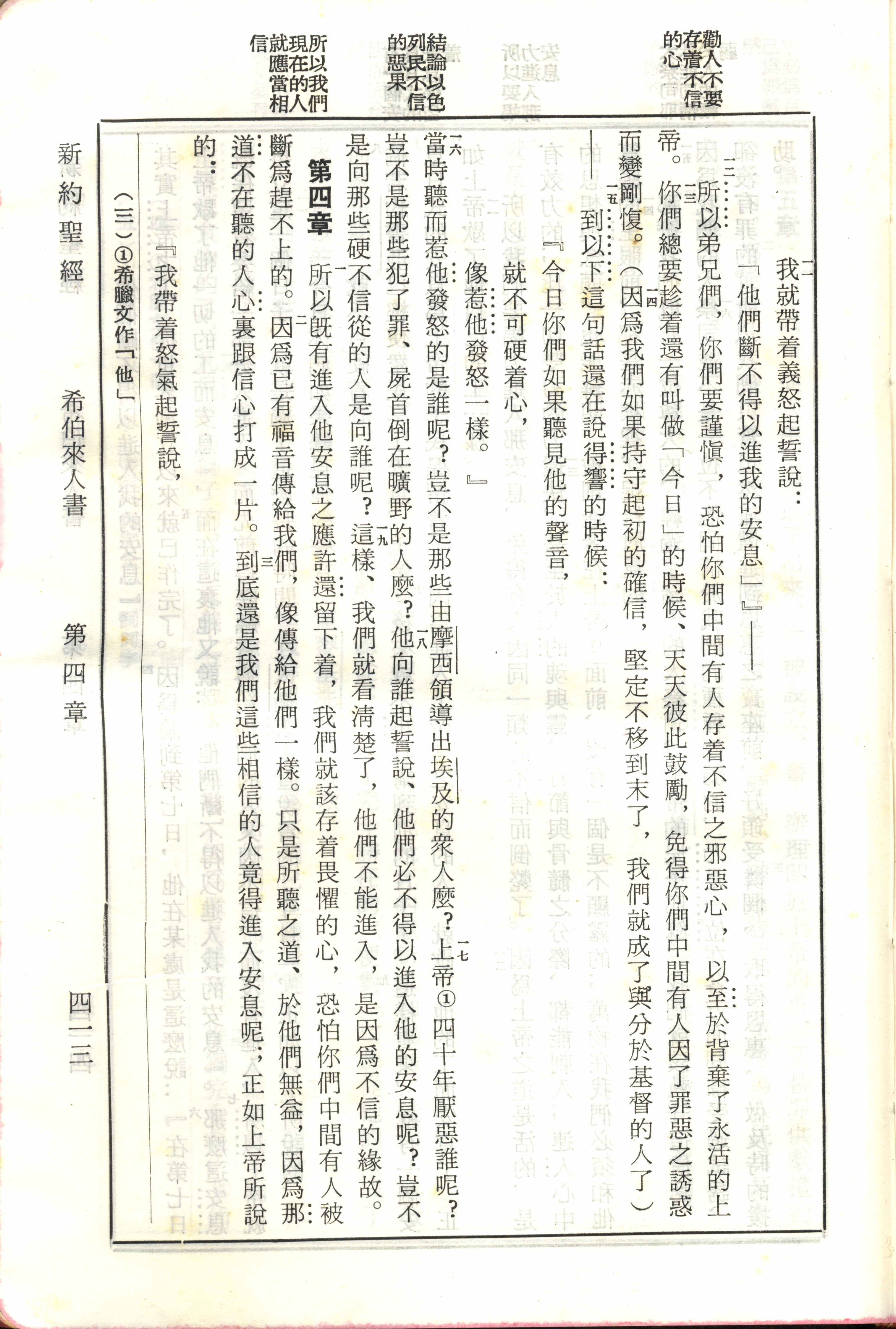1970年新舊約全書(呂振中譯本) 希伯來書 3 章 11 節到 4 章 3 節