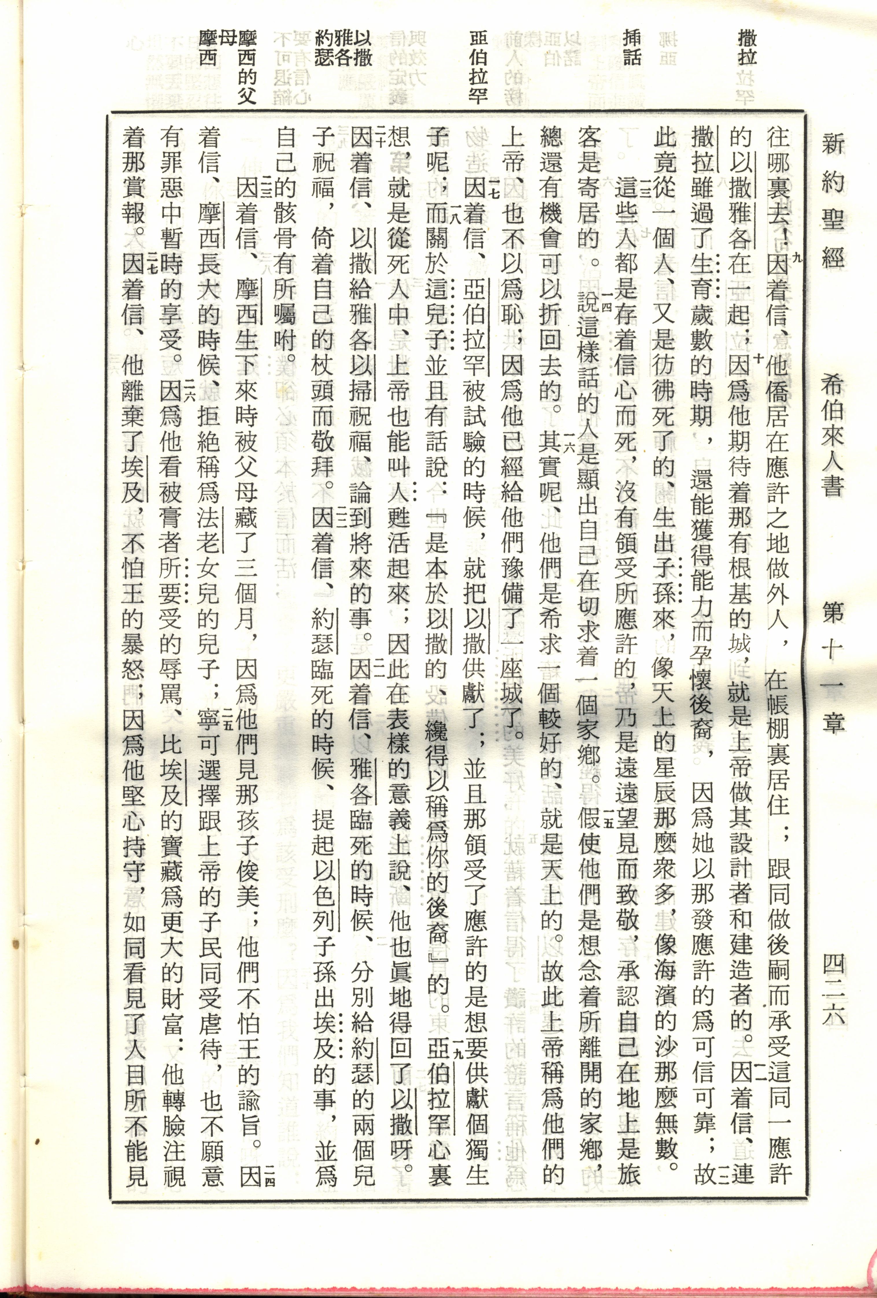 1970年新舊約全書(呂振中譯本) 希伯來書 11 章 9 節到 11 章 27 節