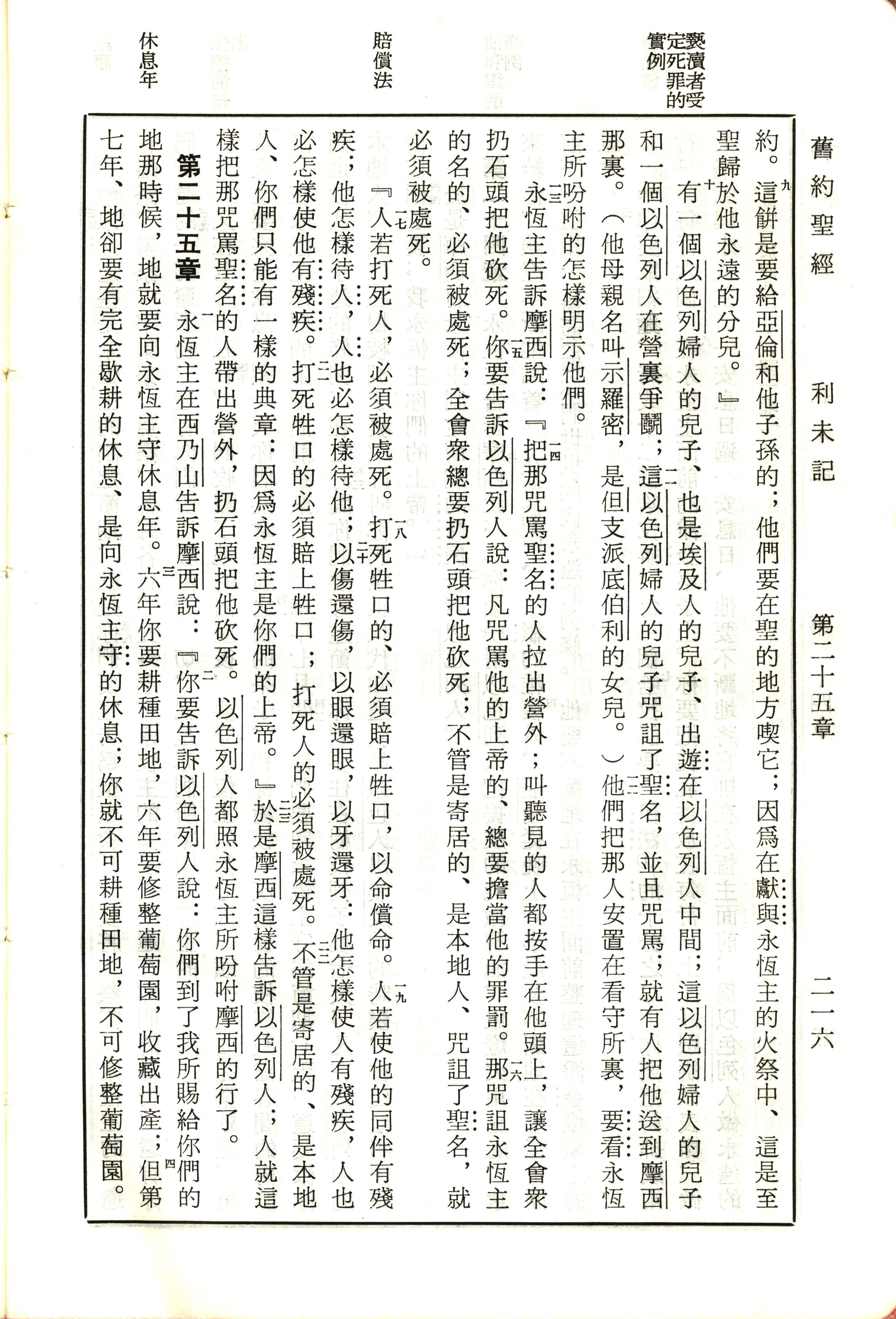 1970年新舊約全書(呂振中譯本) 利未記 24 章 9 節到 25 章 4 節