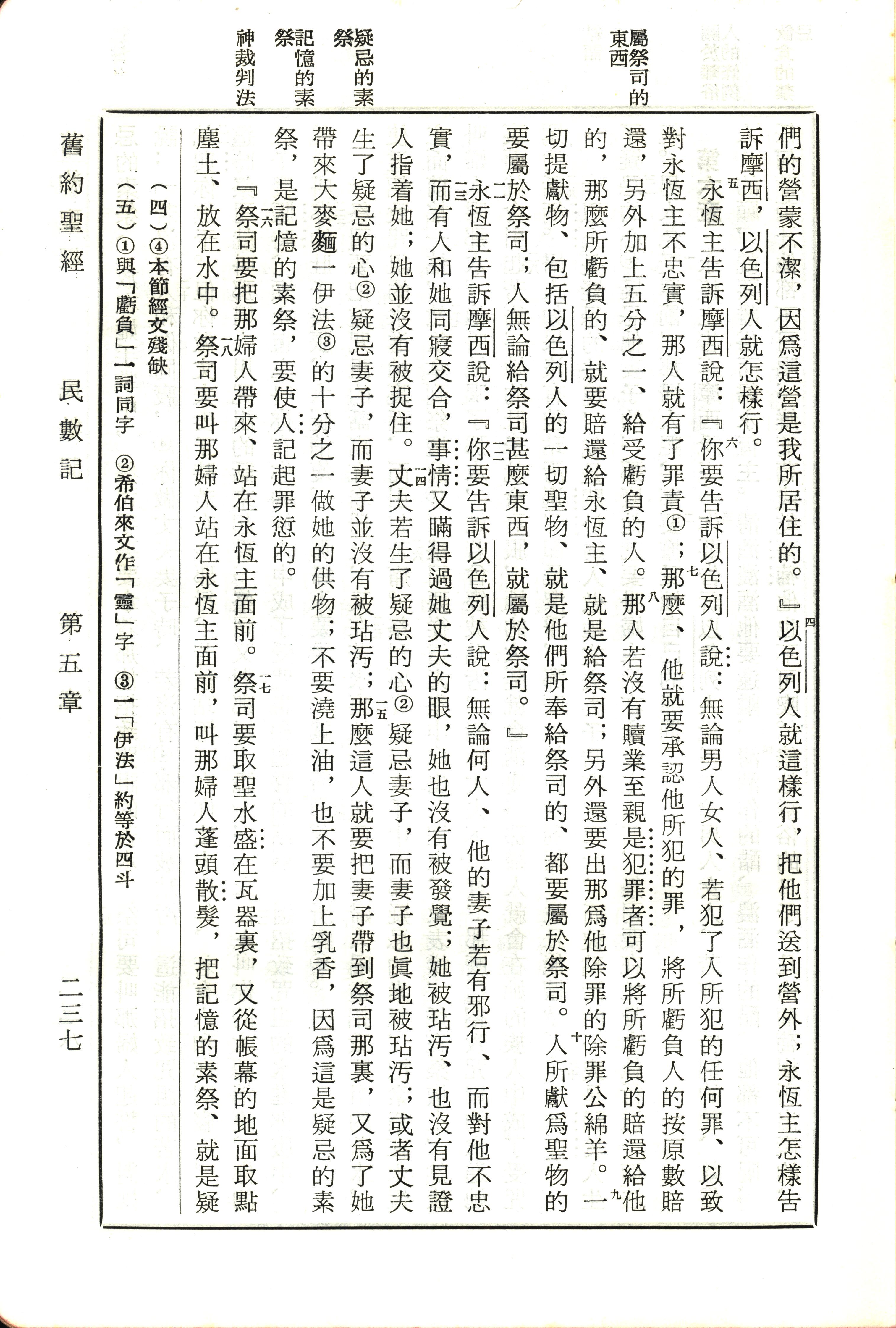 1970年新舊約全書(呂振中譯本) 民數記 5 章 4 節到 5 章 17 節