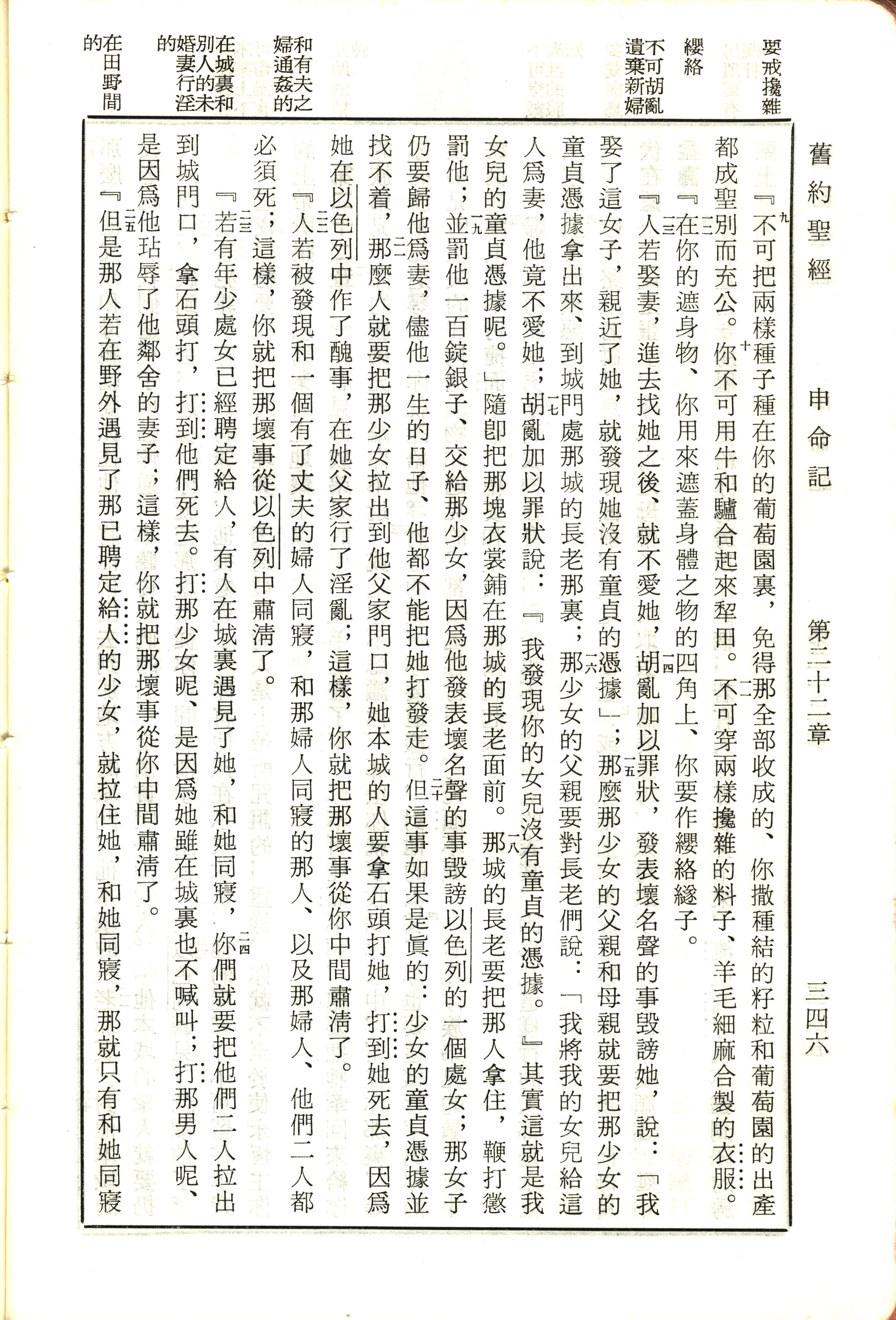 1970年新舊約全書(呂振中譯本) 申命記 22 章 9 節到 22 章 25 節