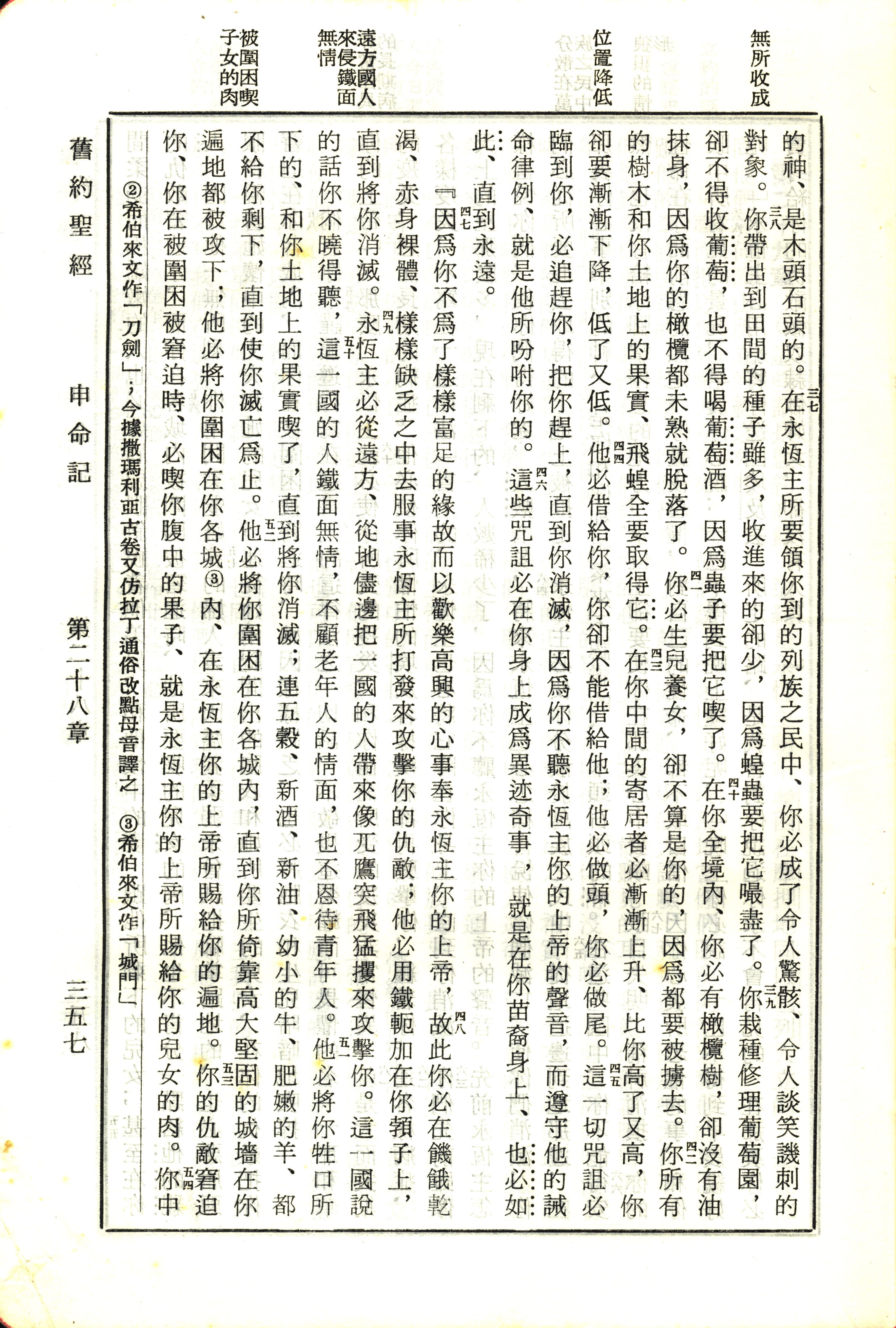 1970年新舊約全書(呂振中譯本) 申命記 28 章 37 節到 28 章 54 節