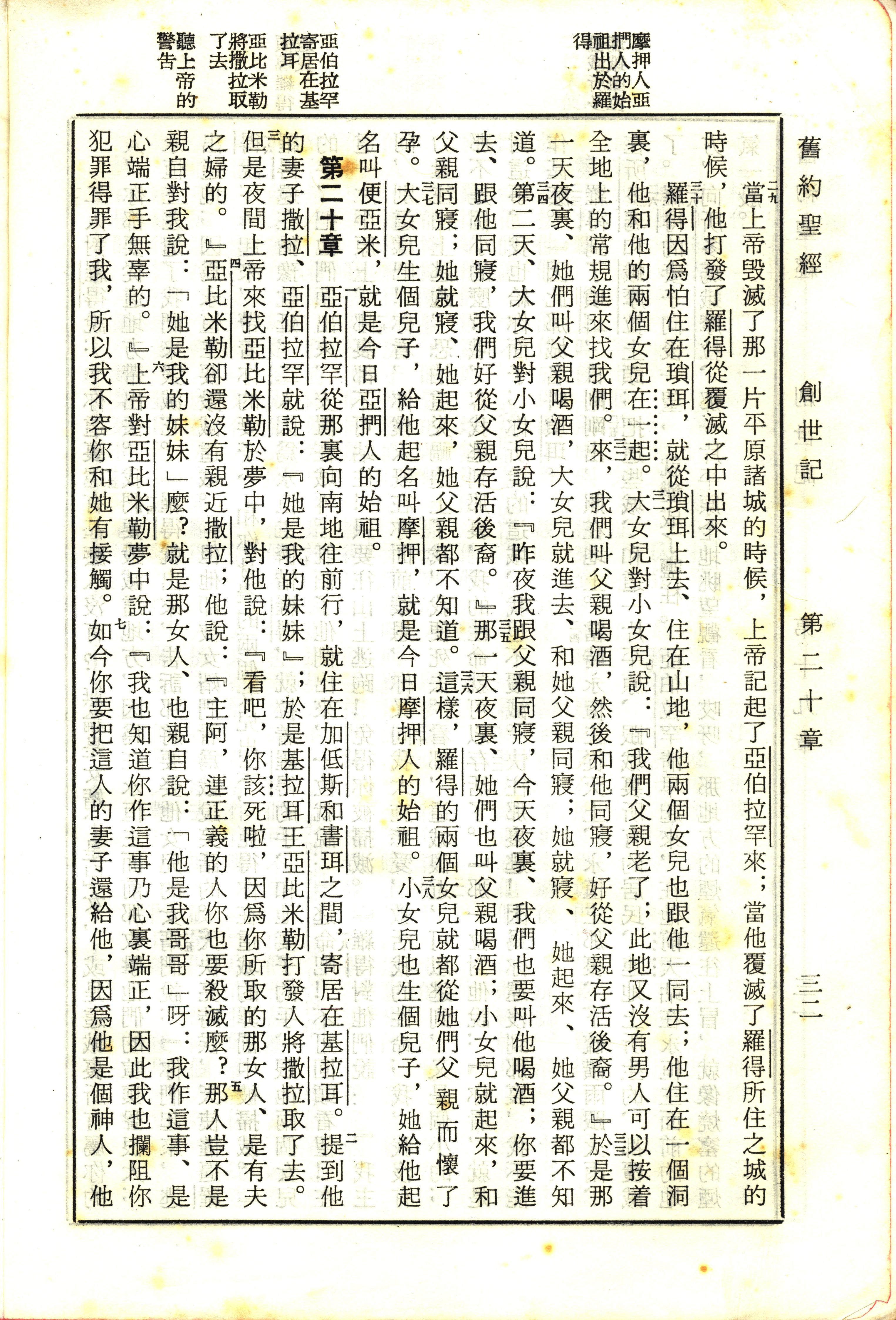 1970年新舊約全書(呂振中譯本) 創世記 19 章 29 節到 20 章 7 節