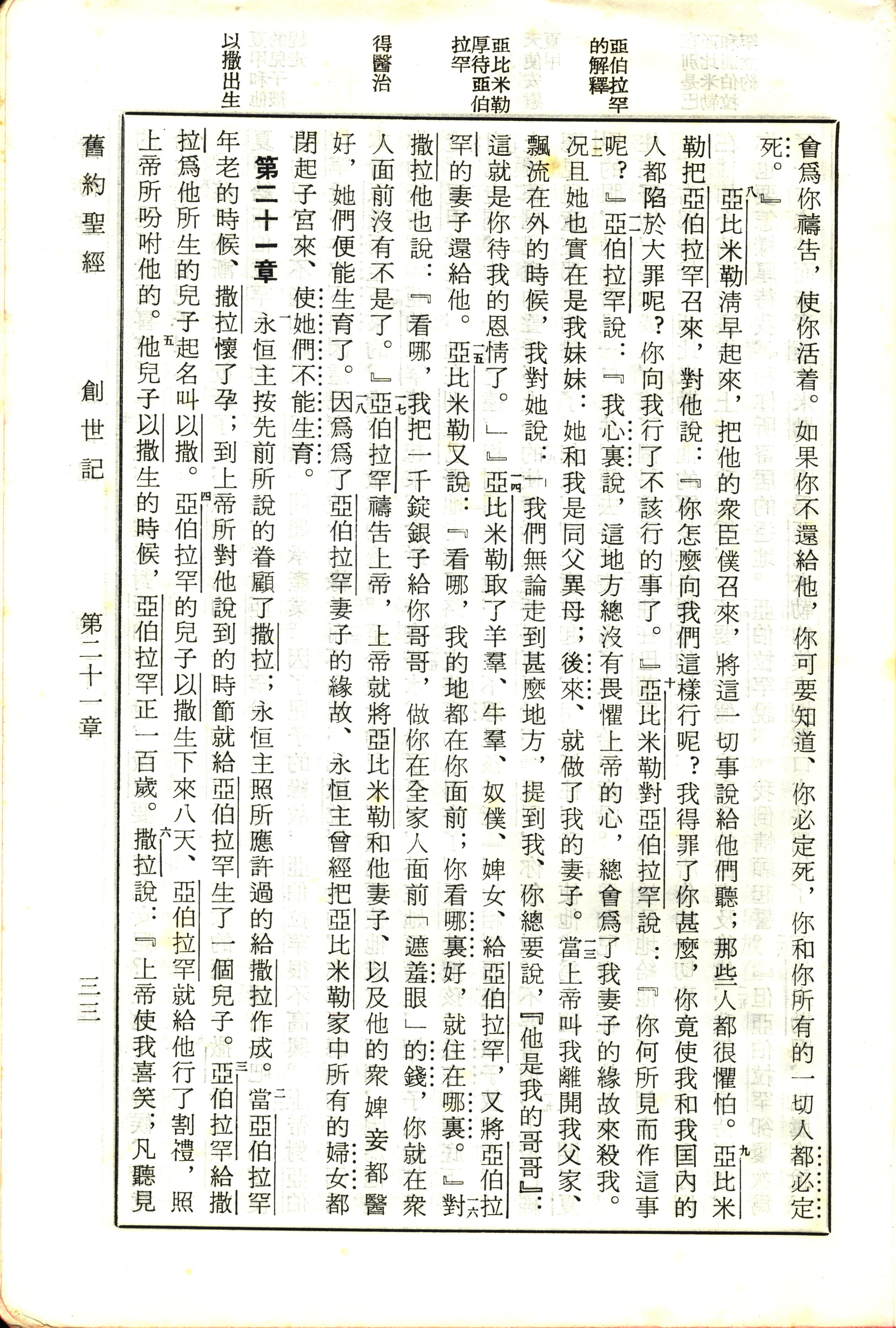 1970年新舊約全書(呂振中譯本) 創世記 20 章 8 節到 21 章 6 節