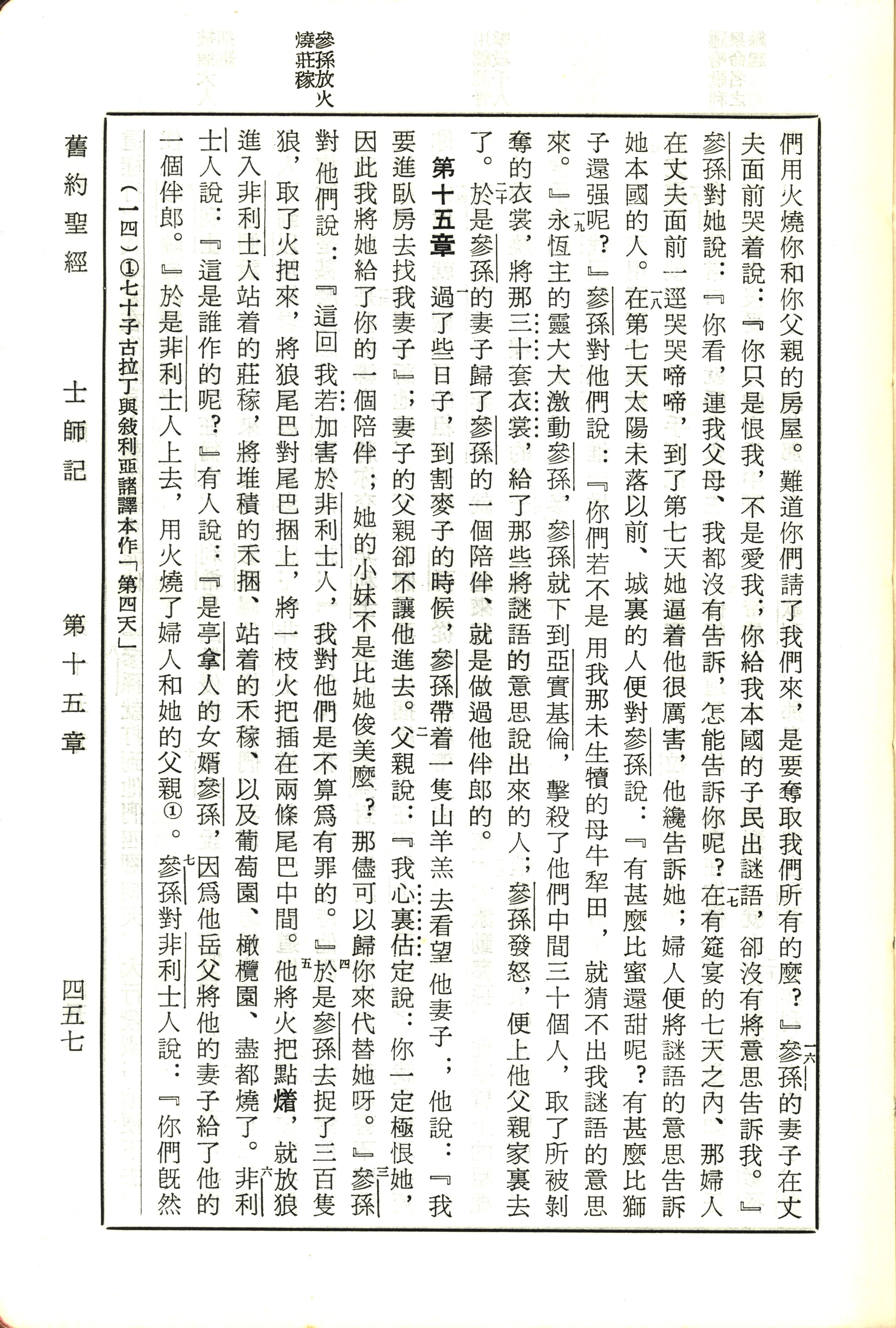 1970年新舊約全書(呂振中譯本) 士師記 14 章 16 節到 15 章 7 節