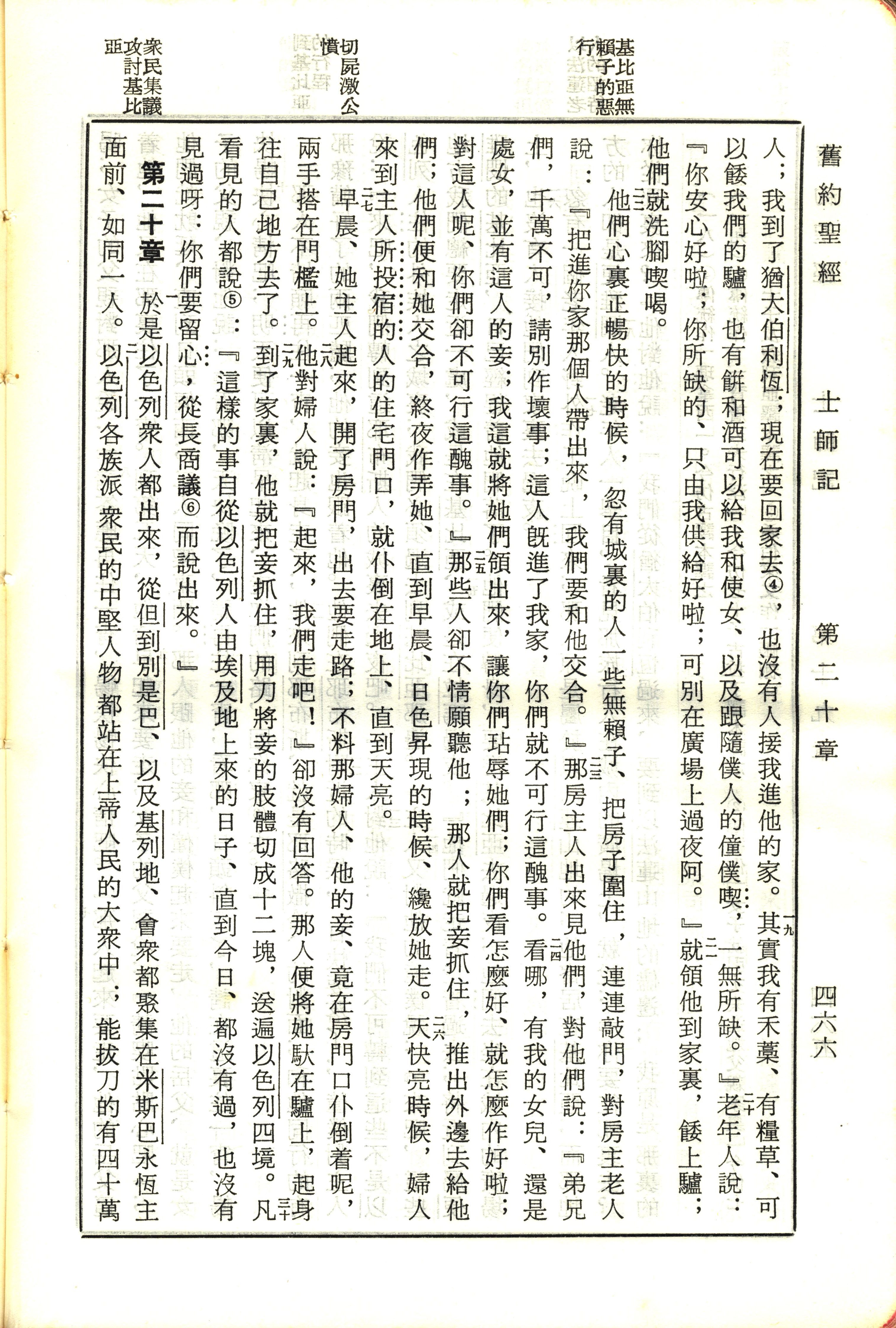 1970年新舊約全書(呂振中譯本) 士師記 19 章 19 節到 20 章 2 節