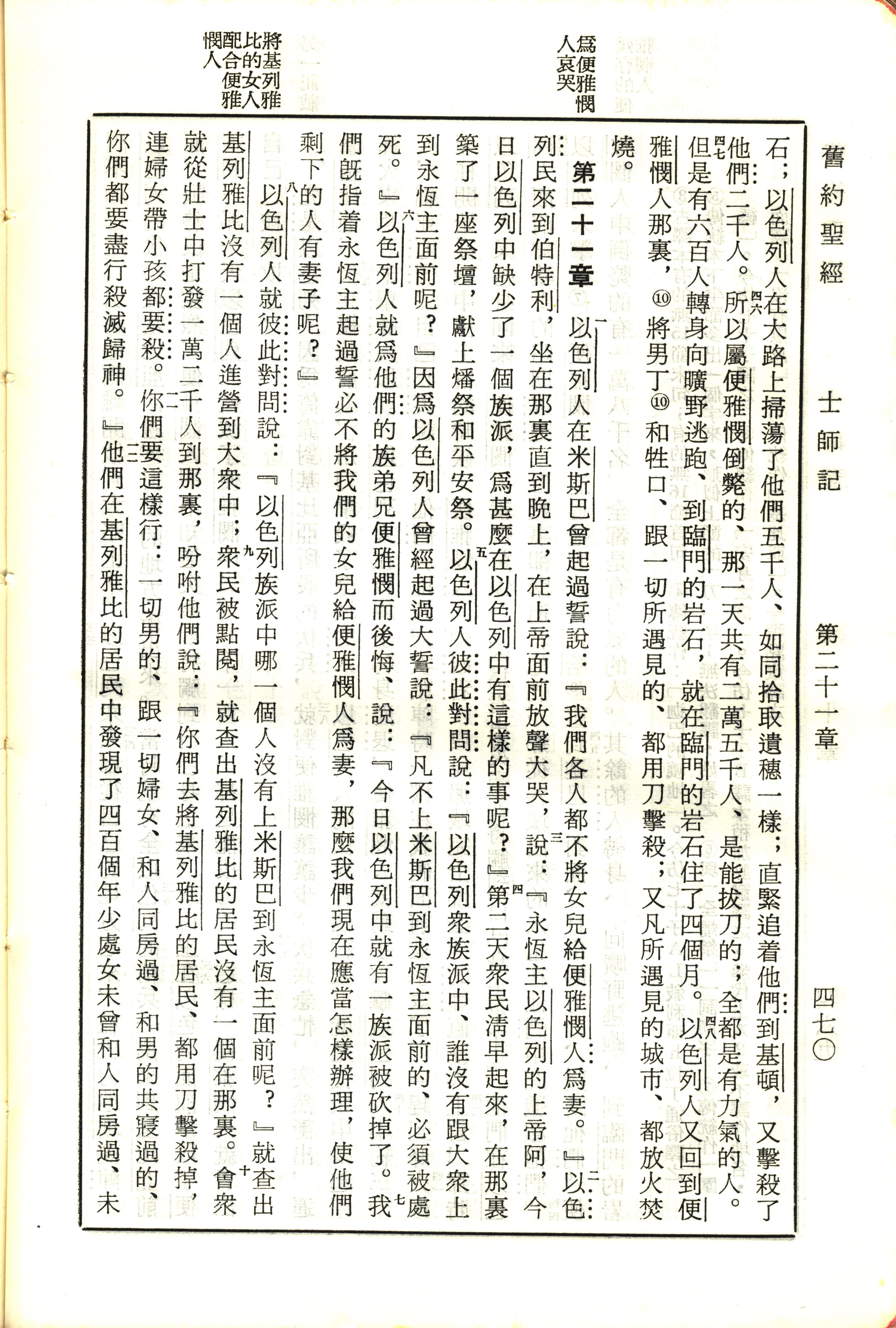 1970年新舊約全書(呂振中譯本) 士師記 20 章 46 節到 21 章 12 節