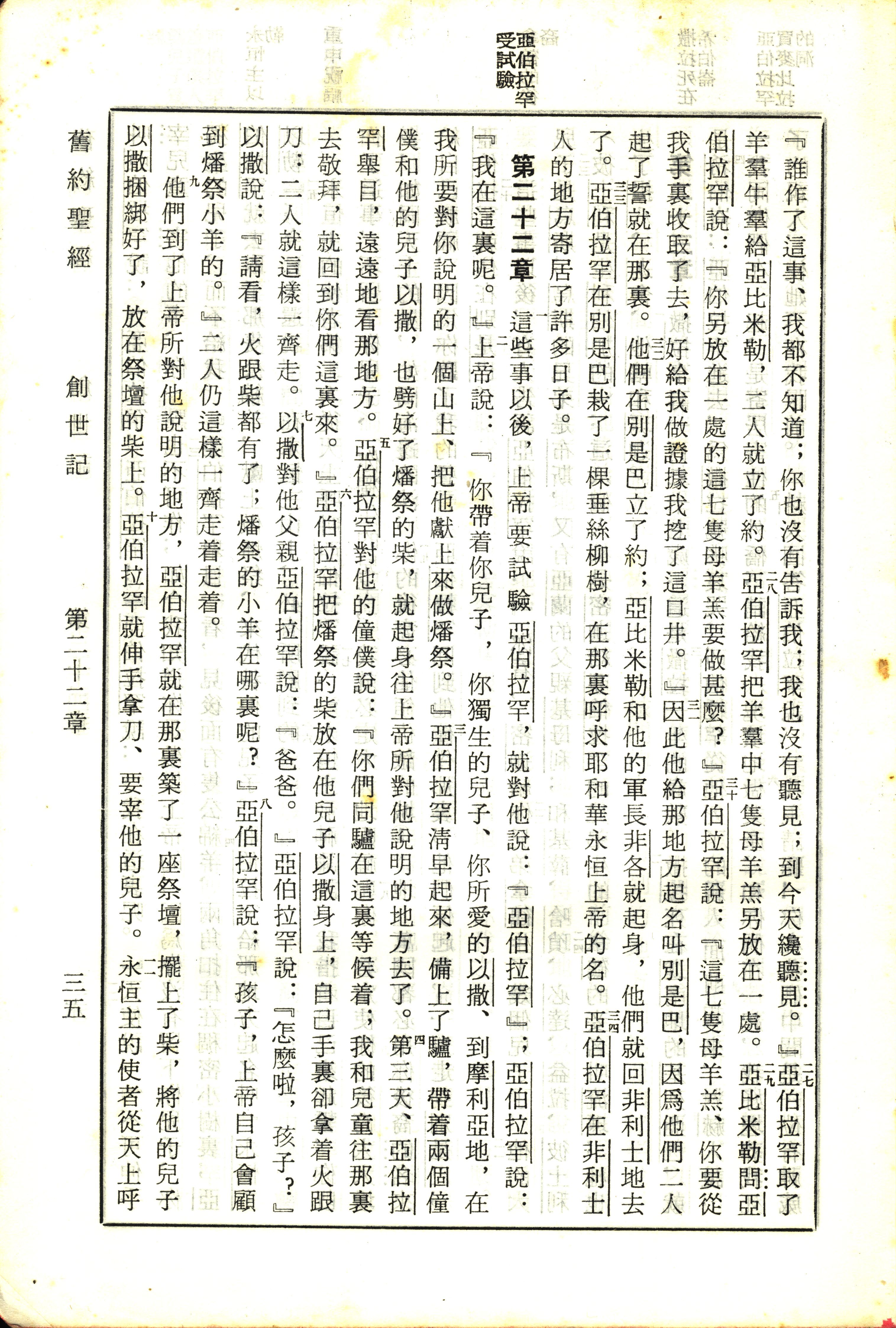 1970年新舊約全書(呂振中譯本) 創世記 21 章 27 節到 22 章 11 節