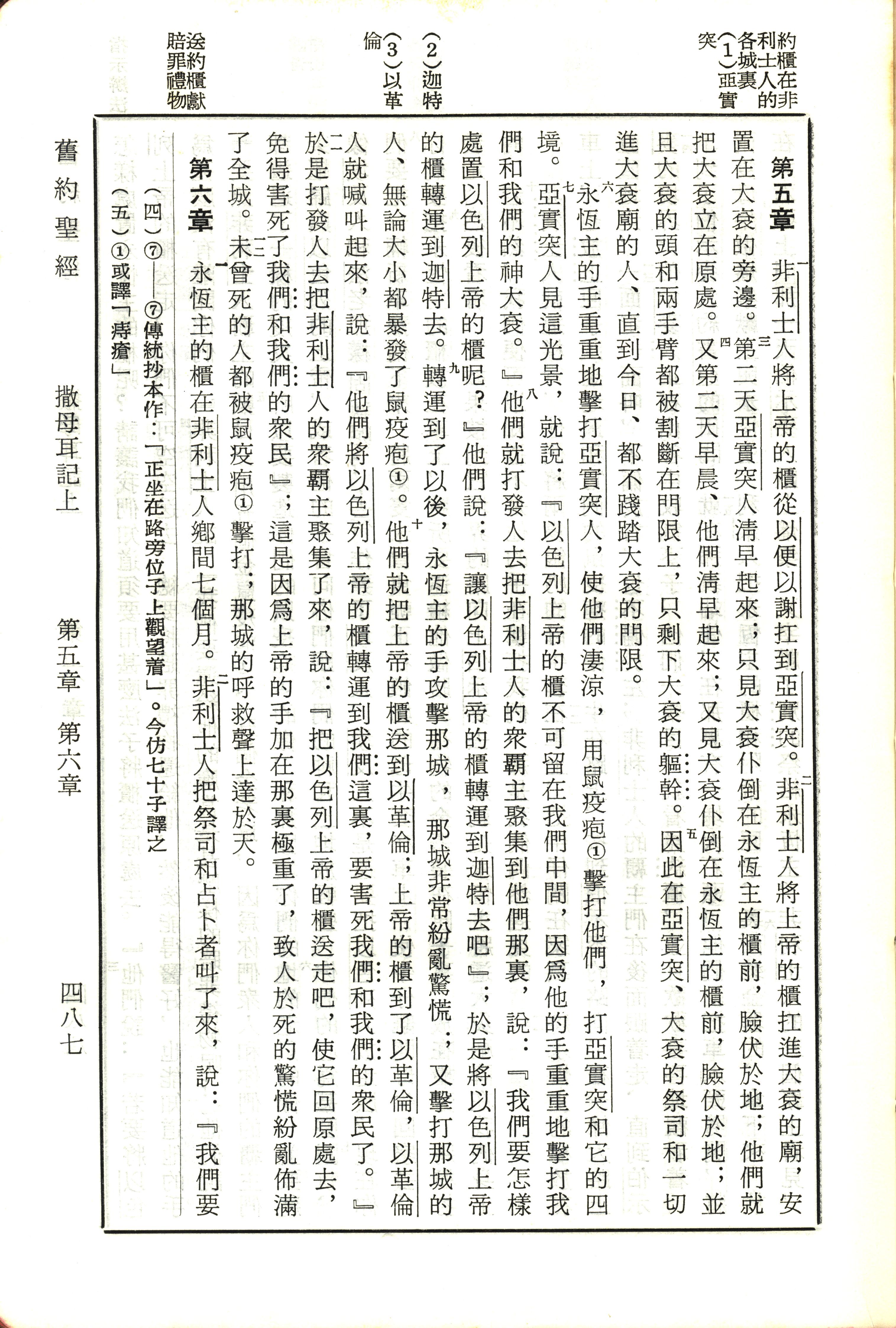 1970年新舊約全書(呂振中譯本) 撒母耳記上 5 章 1 節到 6 章 2 節
