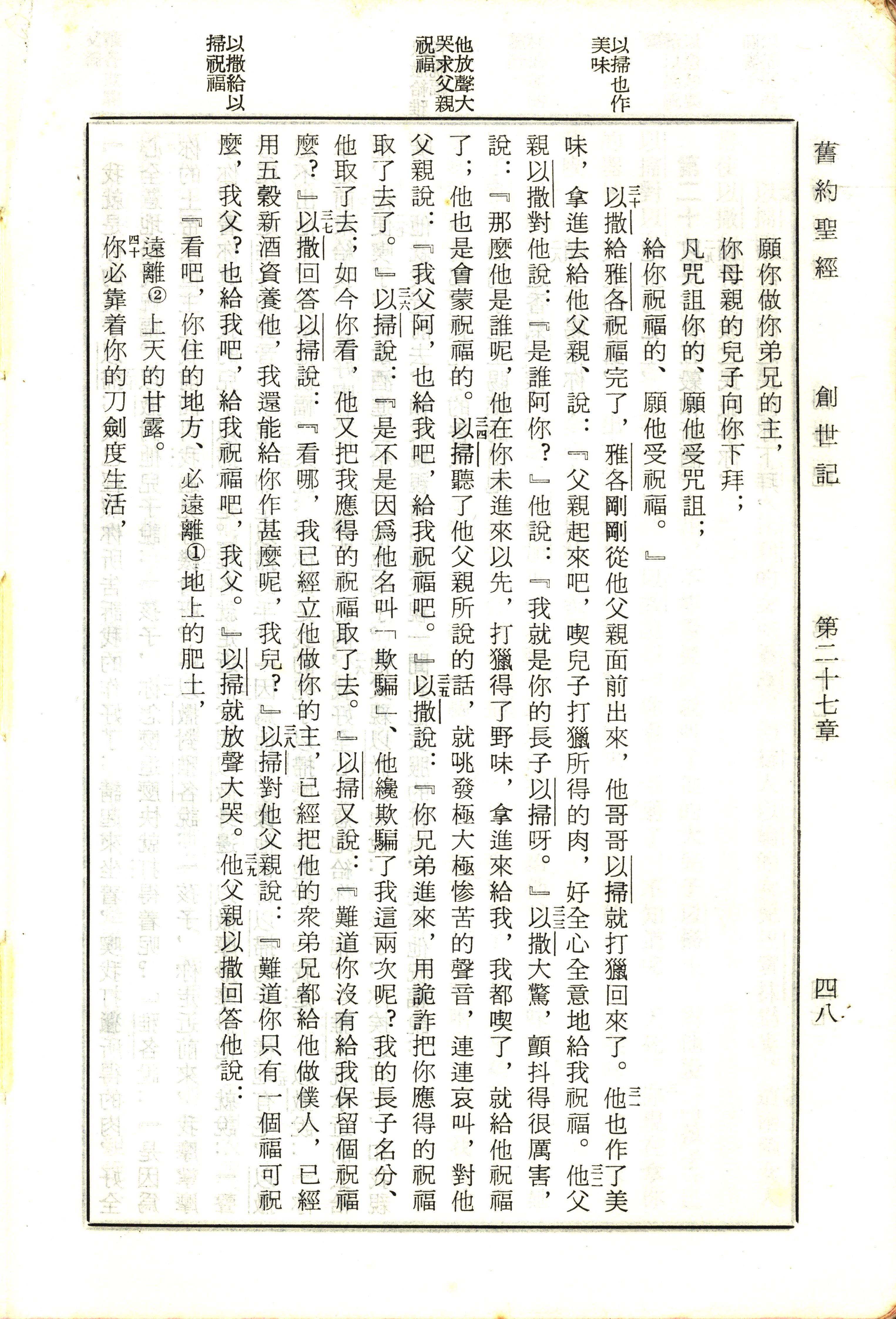 1970年新舊約全書(呂振中譯本) 創世記 27 章 30 節到 27 章 40 節
