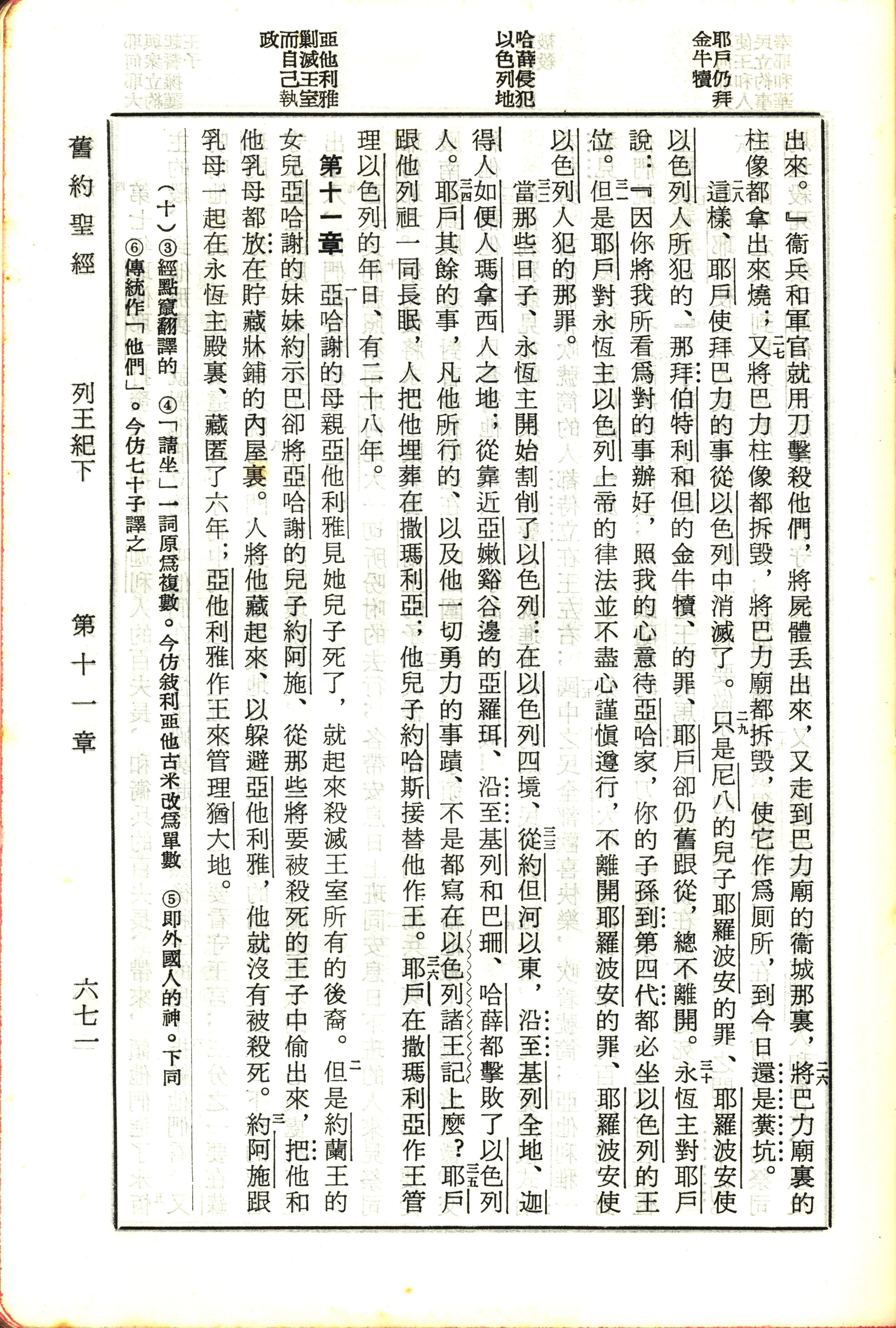 1970年新舊約全書(呂振中譯本) 列王紀下 10 章 26 節到 11 章 3 節