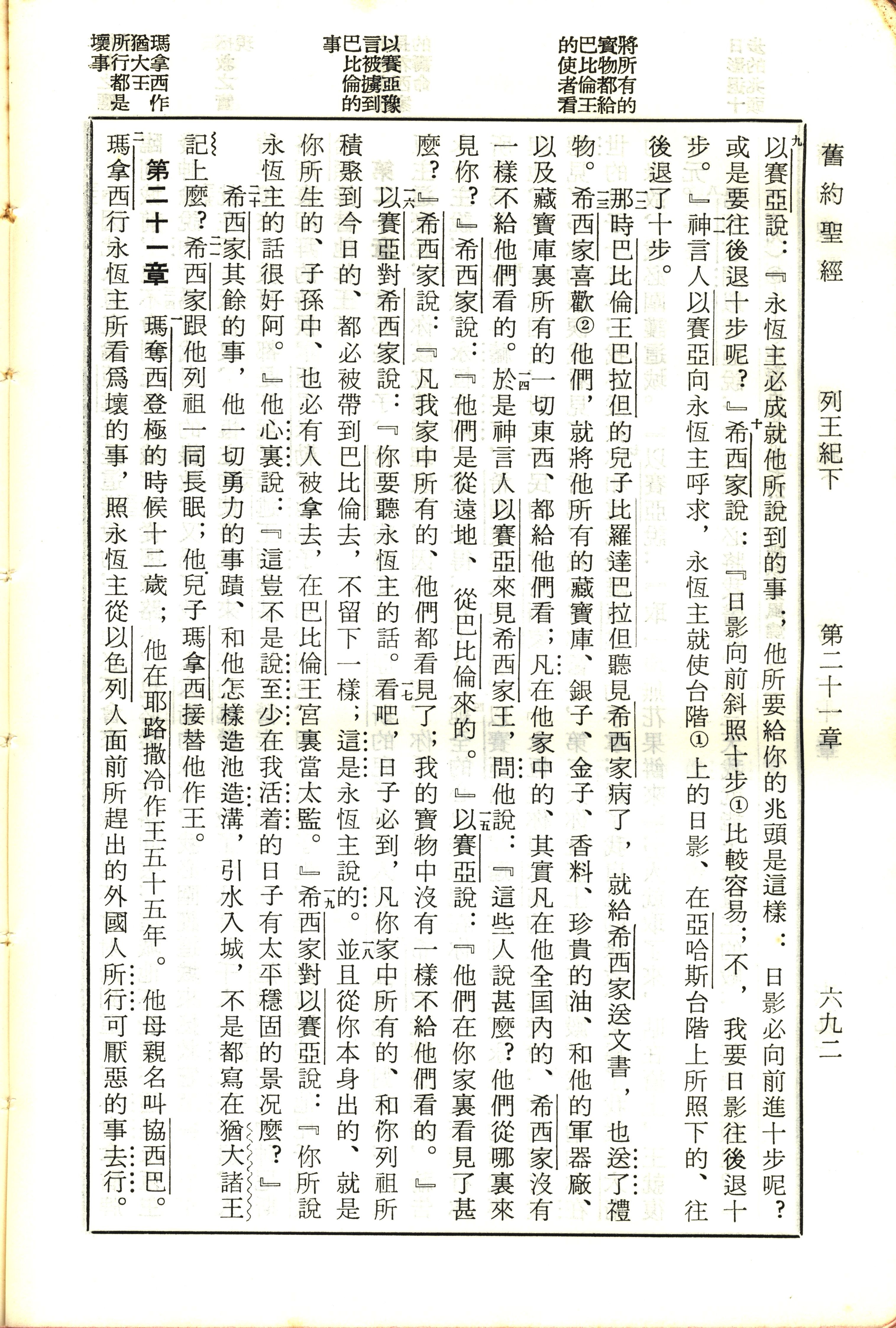 1970年新舊約全書(呂振中譯本) 列王紀下 20 章 9 節到 21 章 2 節