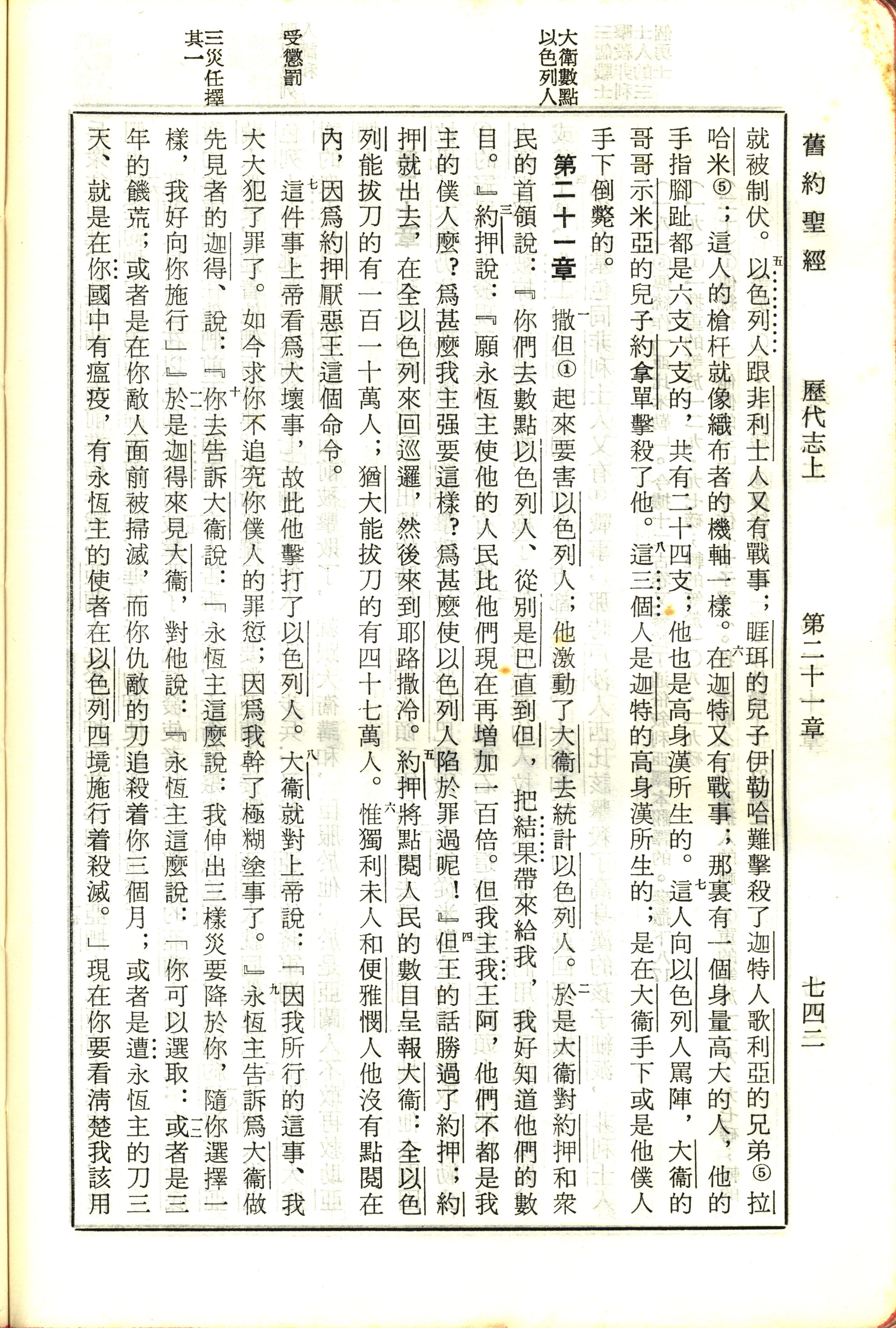 1970年新舊約全書(呂振中譯本) 歷代志上 20 章 5 節到 21 章 12 節