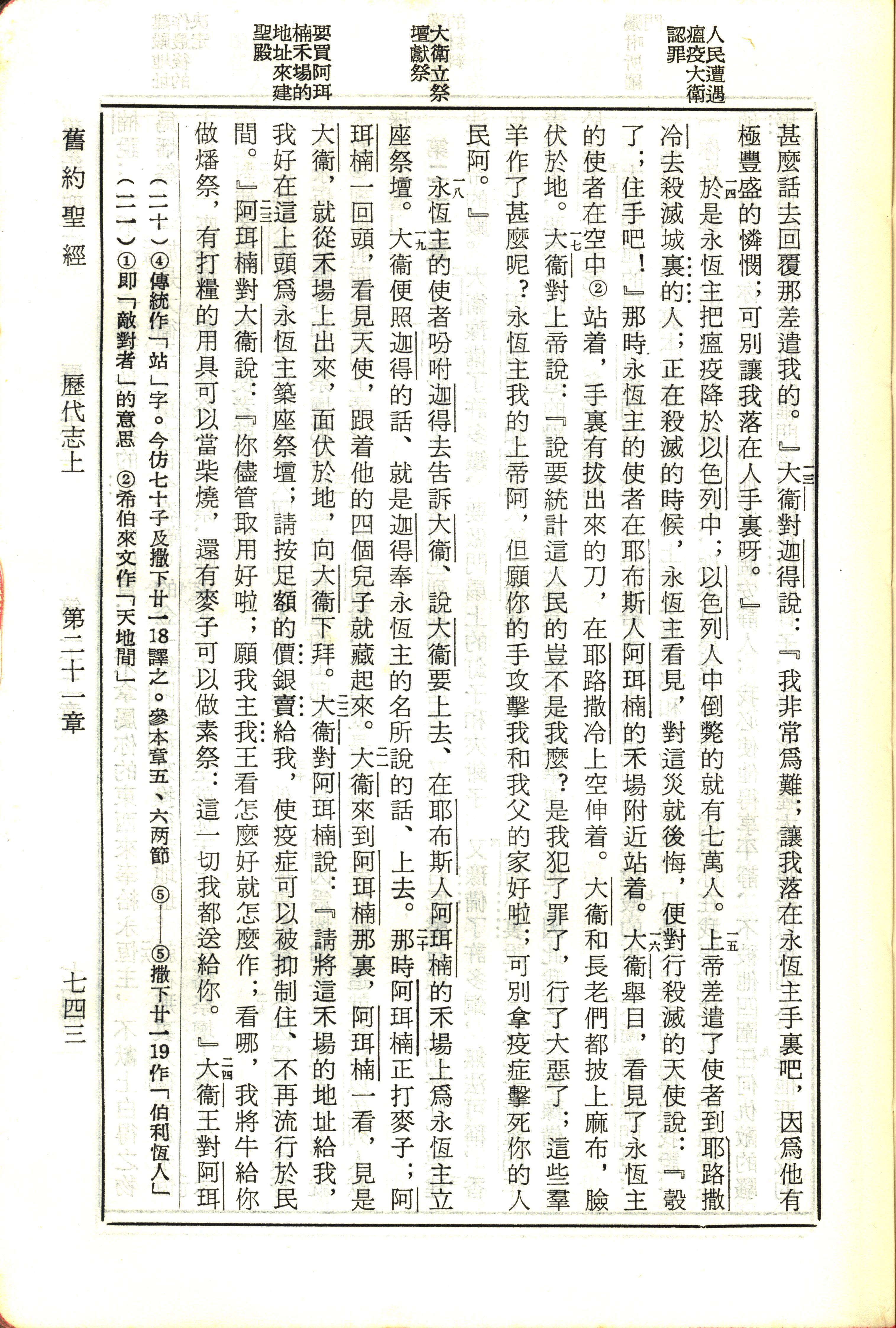 1970年新舊約全書(呂振中譯本) 歷代志上 21 章 13 節到 21 章 24 節
