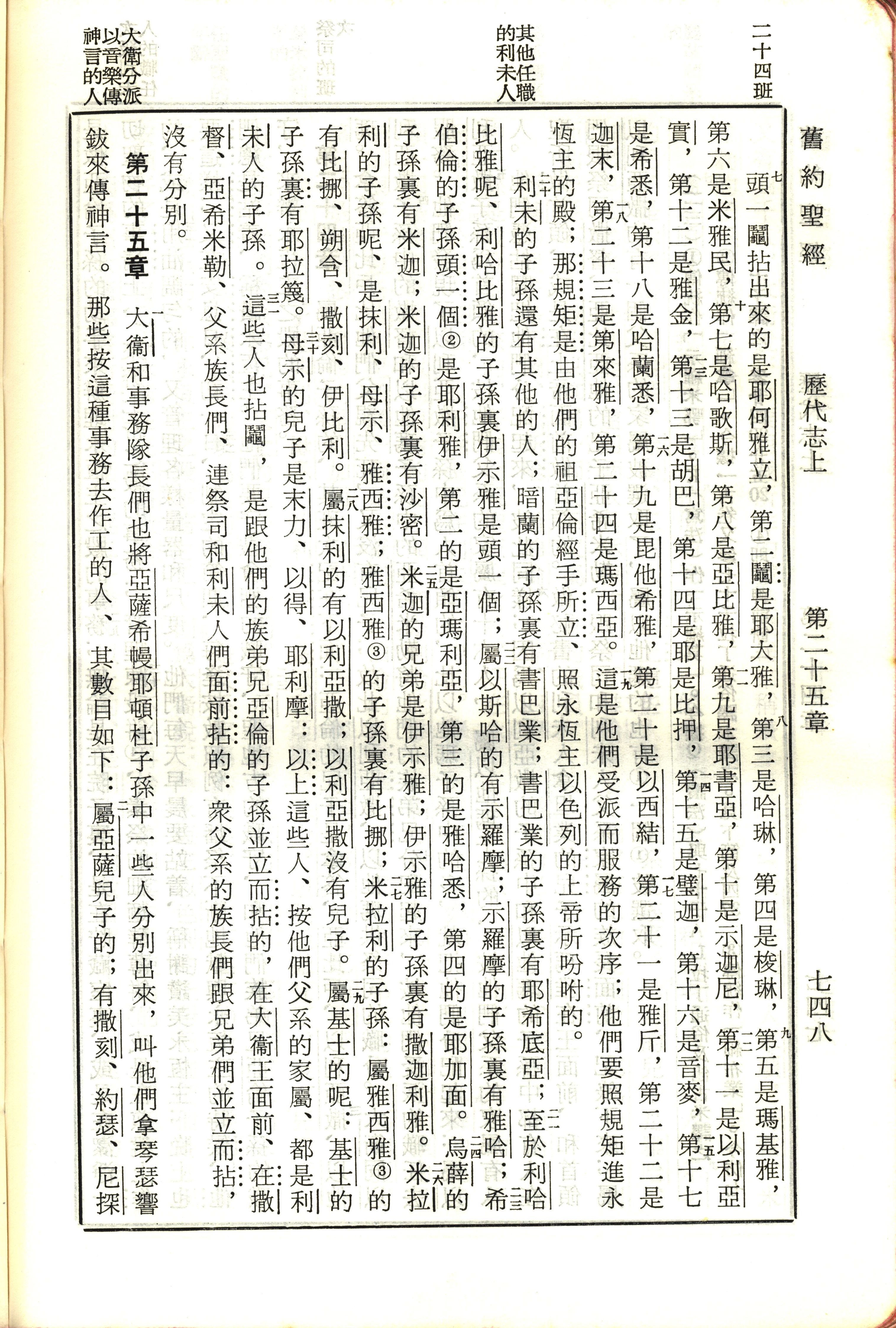 1970年新舊約全書(呂振中譯本) 歷代志上 24 章 7 節到 25 章 2 節