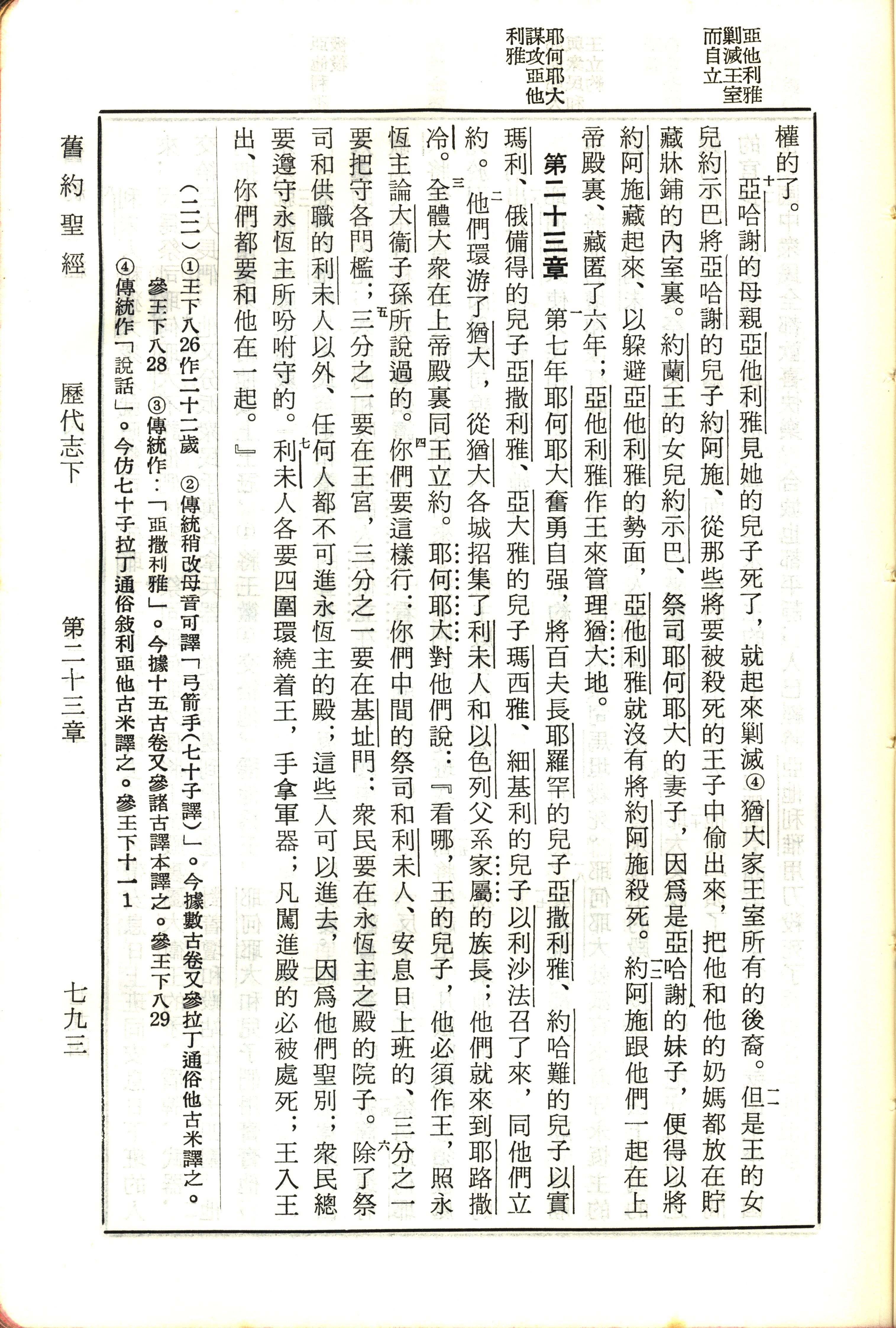 1970年新舊約全書(呂振中譯本) 歷代志下 22 章 10 節到 23 章 7 節