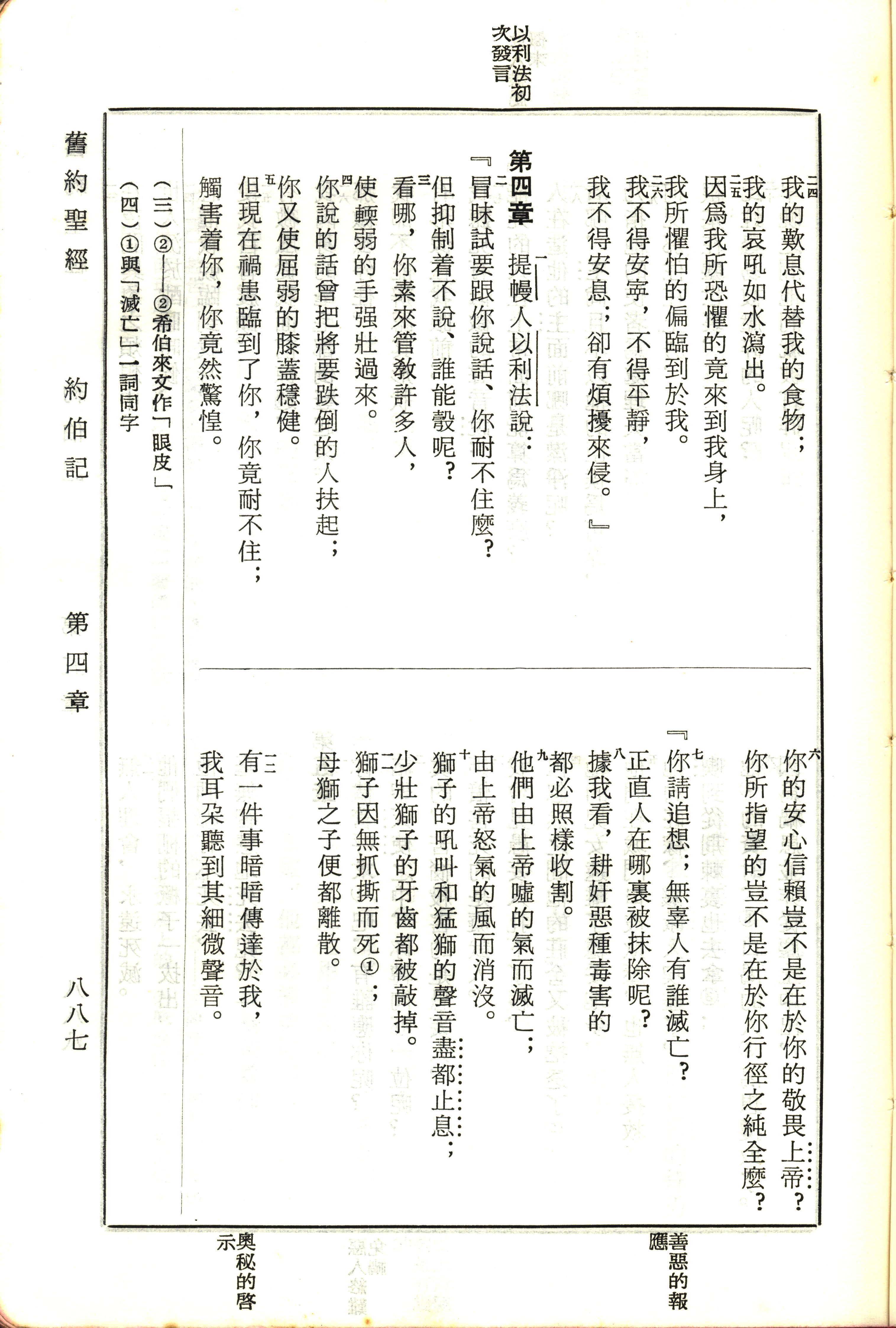 1970年新舊約全書(呂振中譯本) 約伯記 3 章 24 節到 4 章 12 節