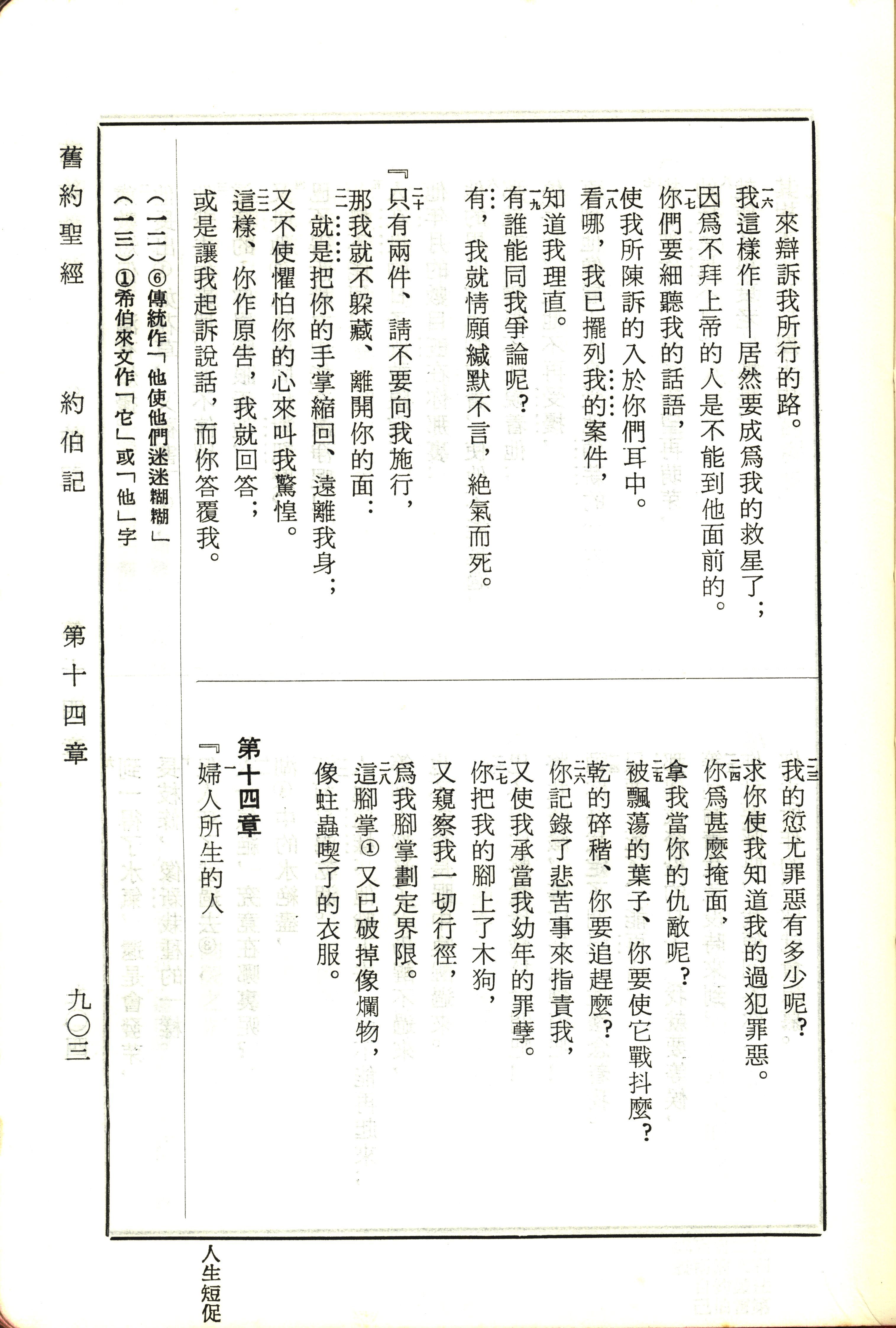 1970年新舊約全書(呂振中譯本) 約伯記 13 章 16 節到 14 章 1 節