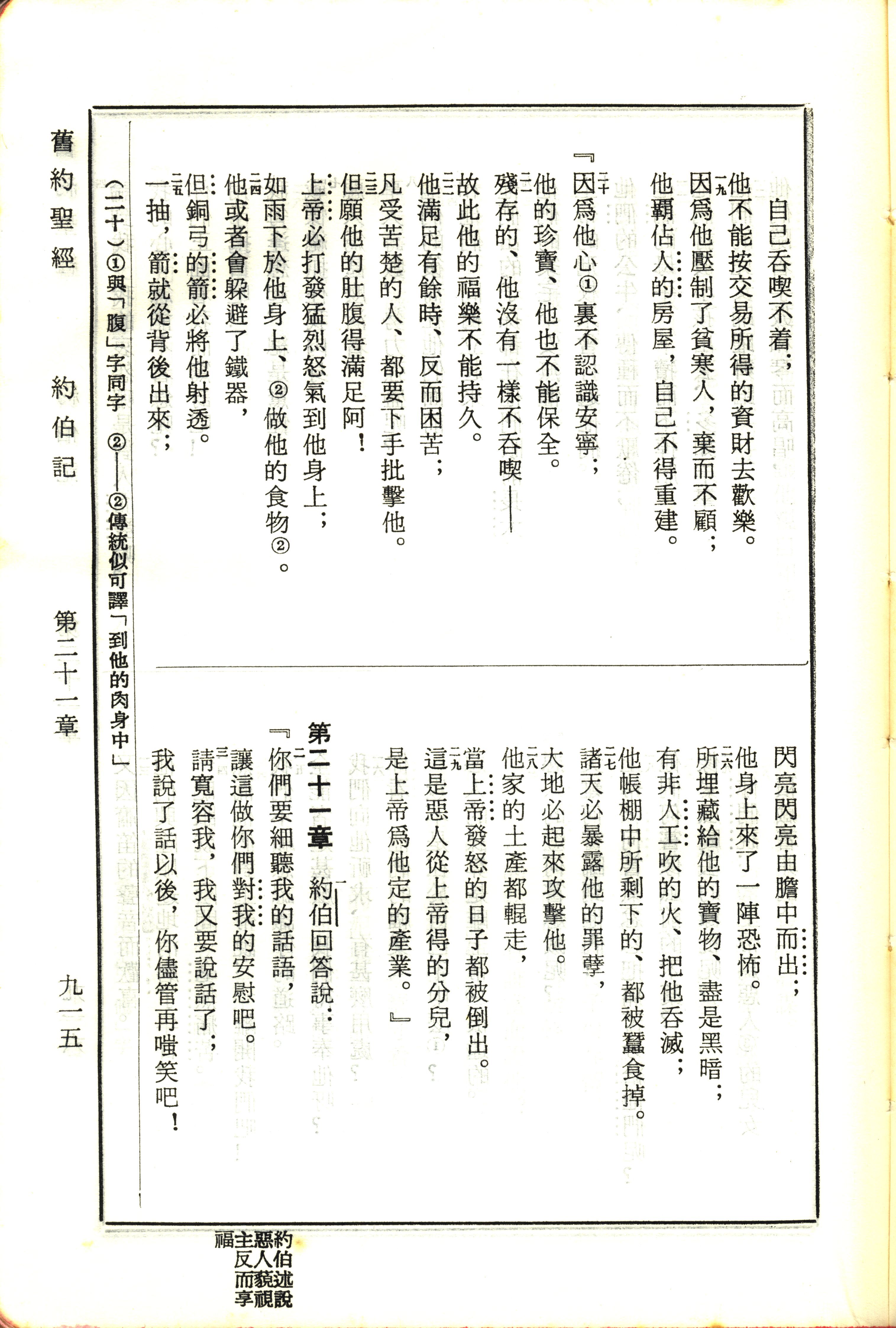 1970年新舊約全書(呂振中譯本) 約伯記 20 章 19 節到 21 章 3 節