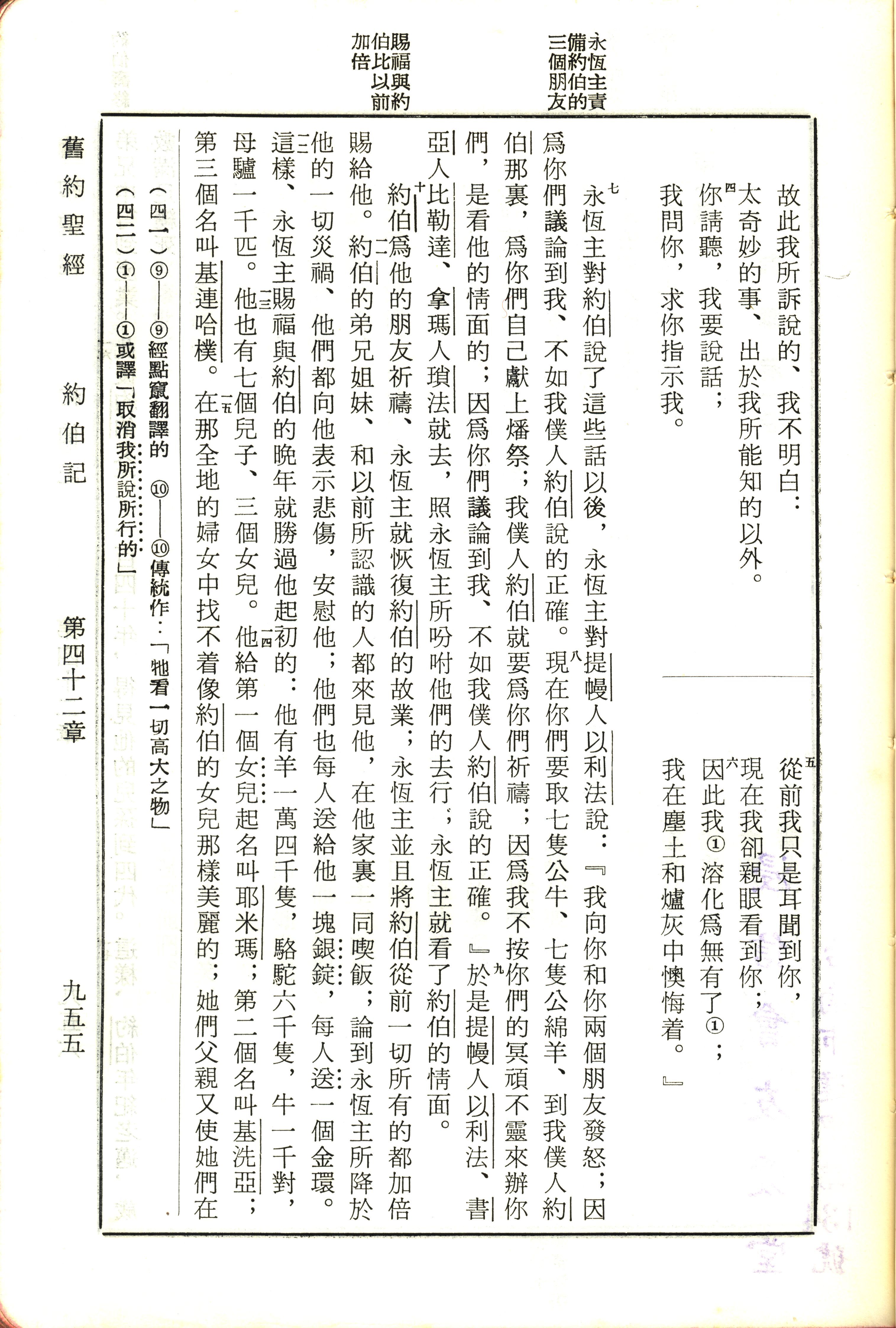 1970年新舊約全書(呂振中譯本) 約伯記 42 章 4 節到 42 章 15 節