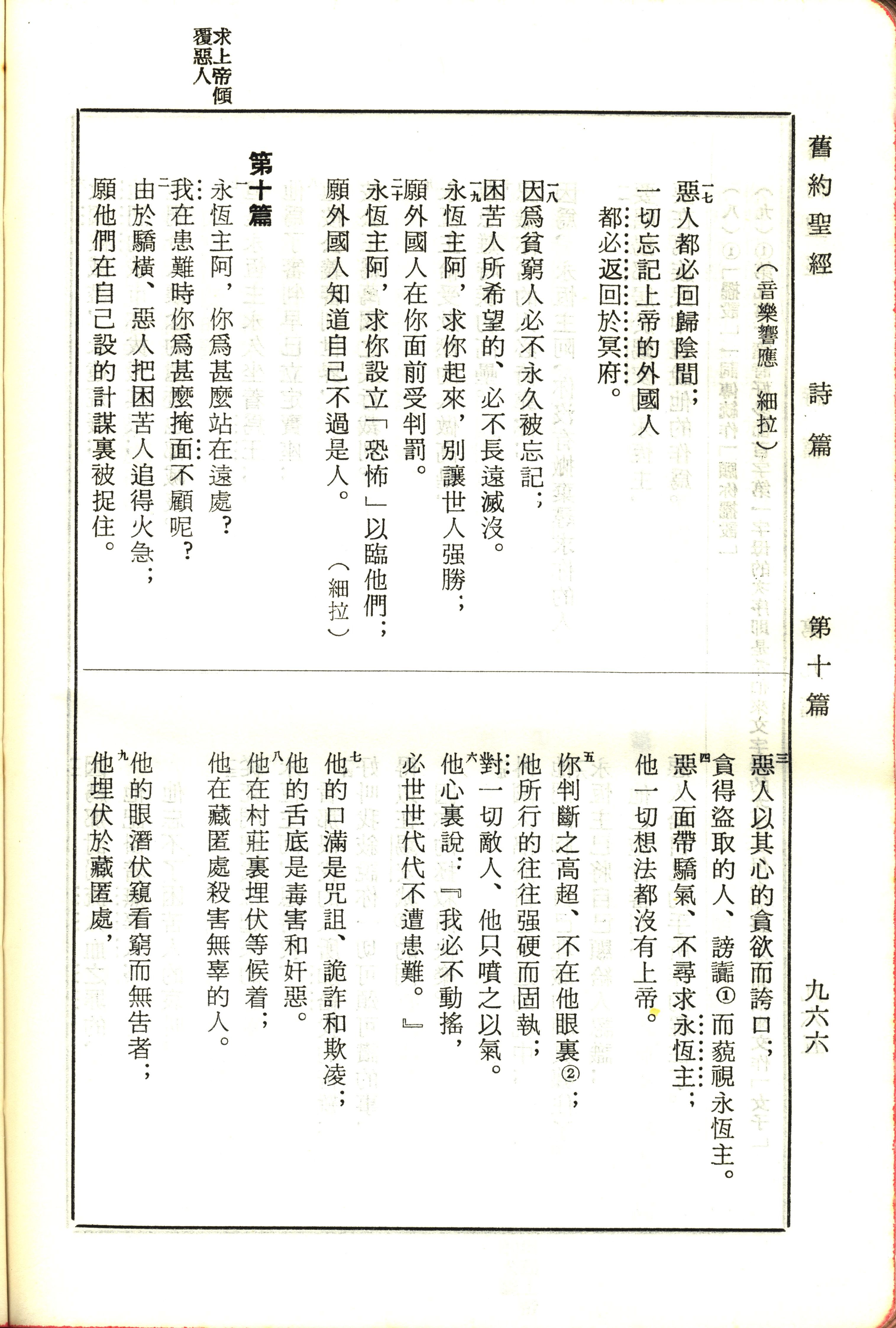 1970年新舊約全書(呂振中譯本) 詩篇 9 章 17 節到 10 章 9 節