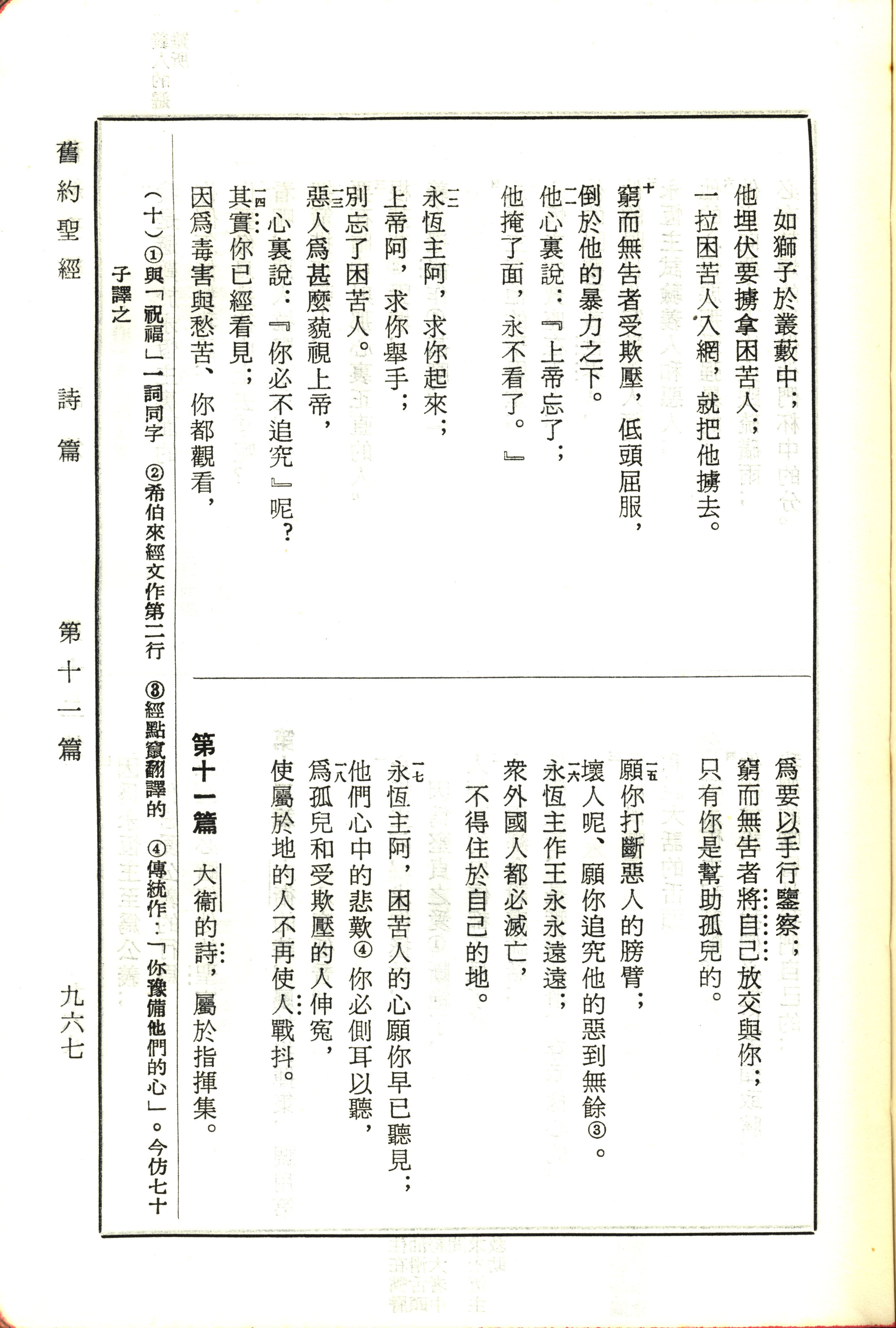 1970年新舊約全書(呂振中譯本) 詩篇 10 章 10 節到 11 章 1 節
