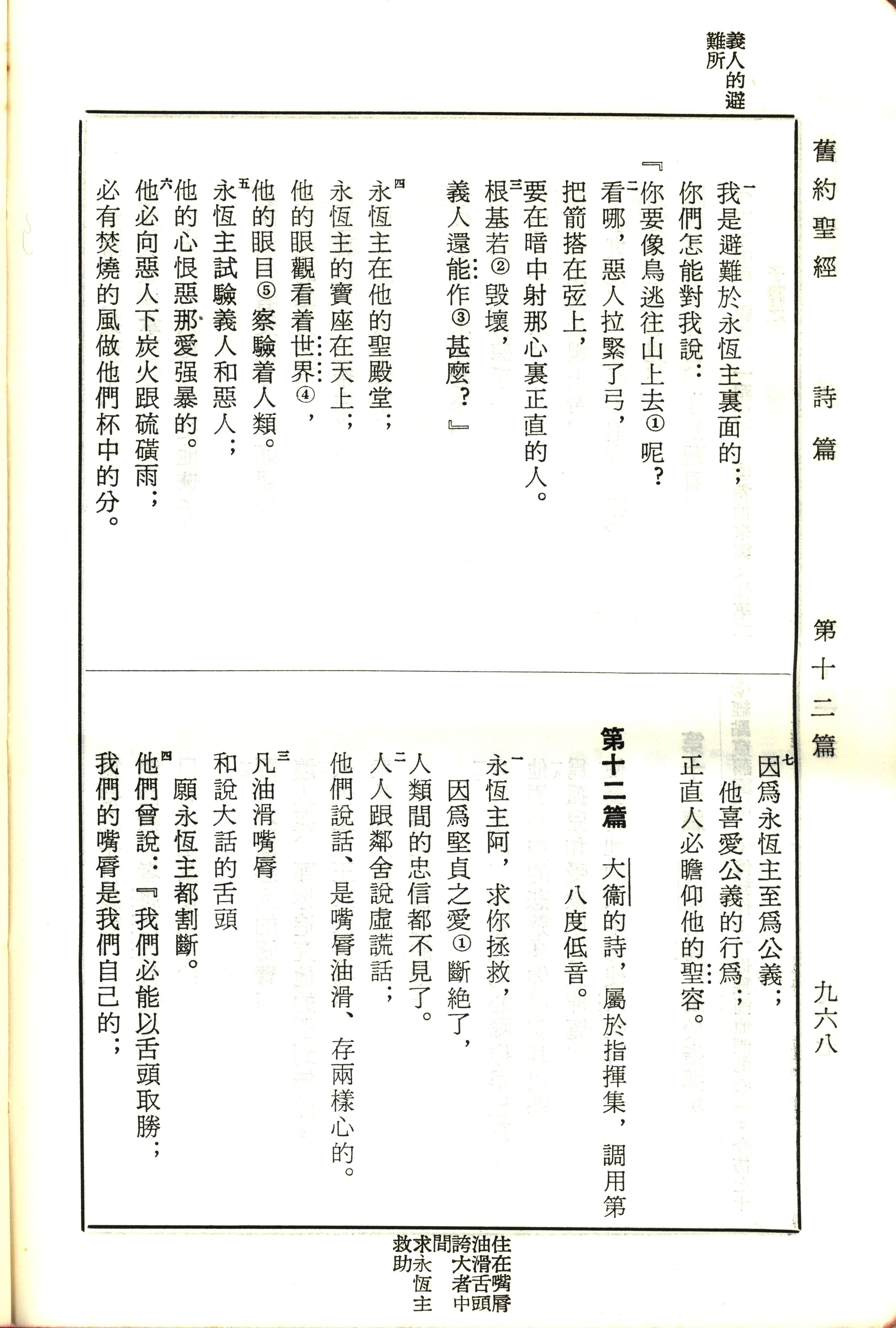 1970年新舊約全書(呂振中譯本) 詩篇 11 章 1 節到 12 章 4 節