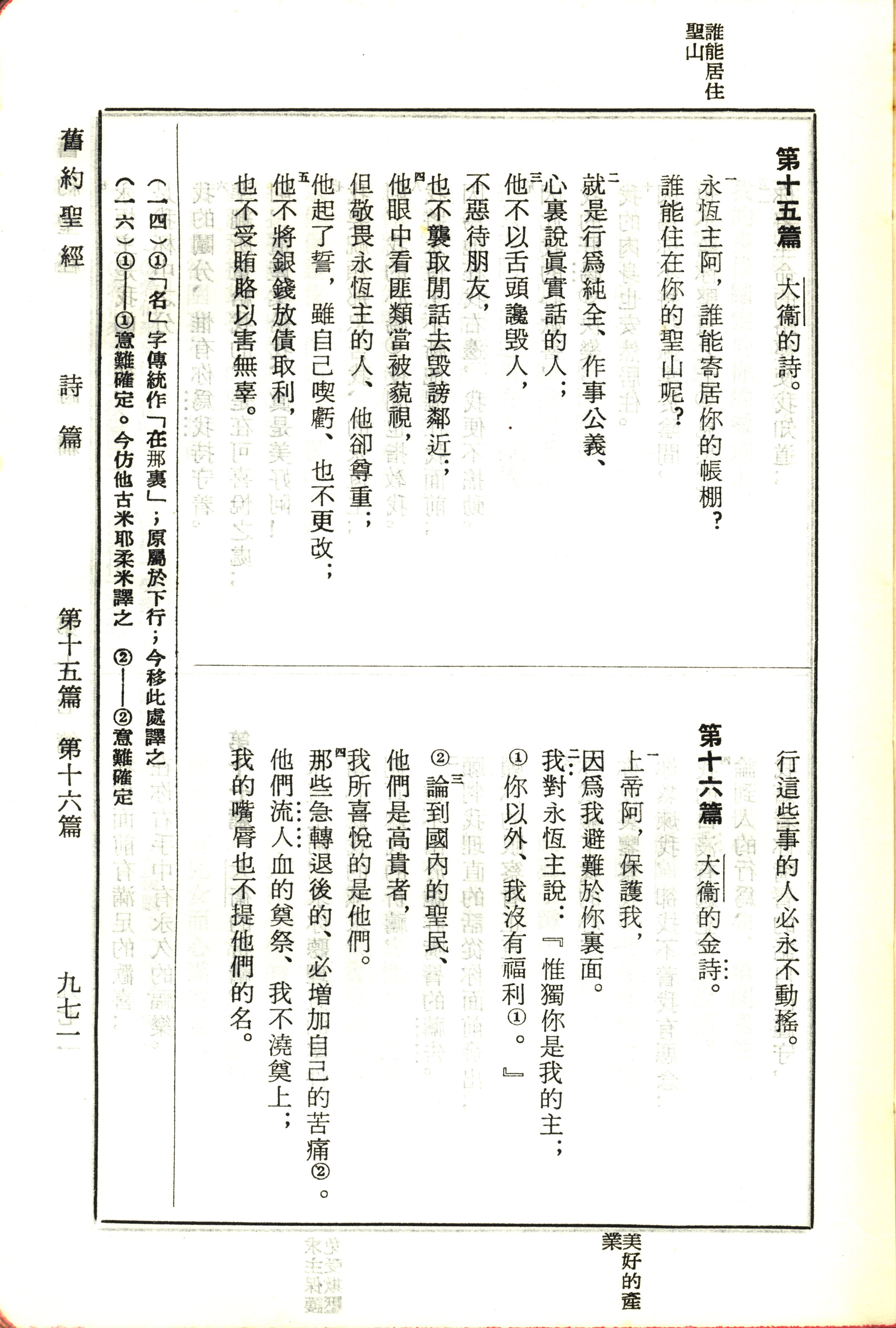 1970年新舊約全書(呂振中譯本) 詩篇 15 章 1 節到 16 章 4 節