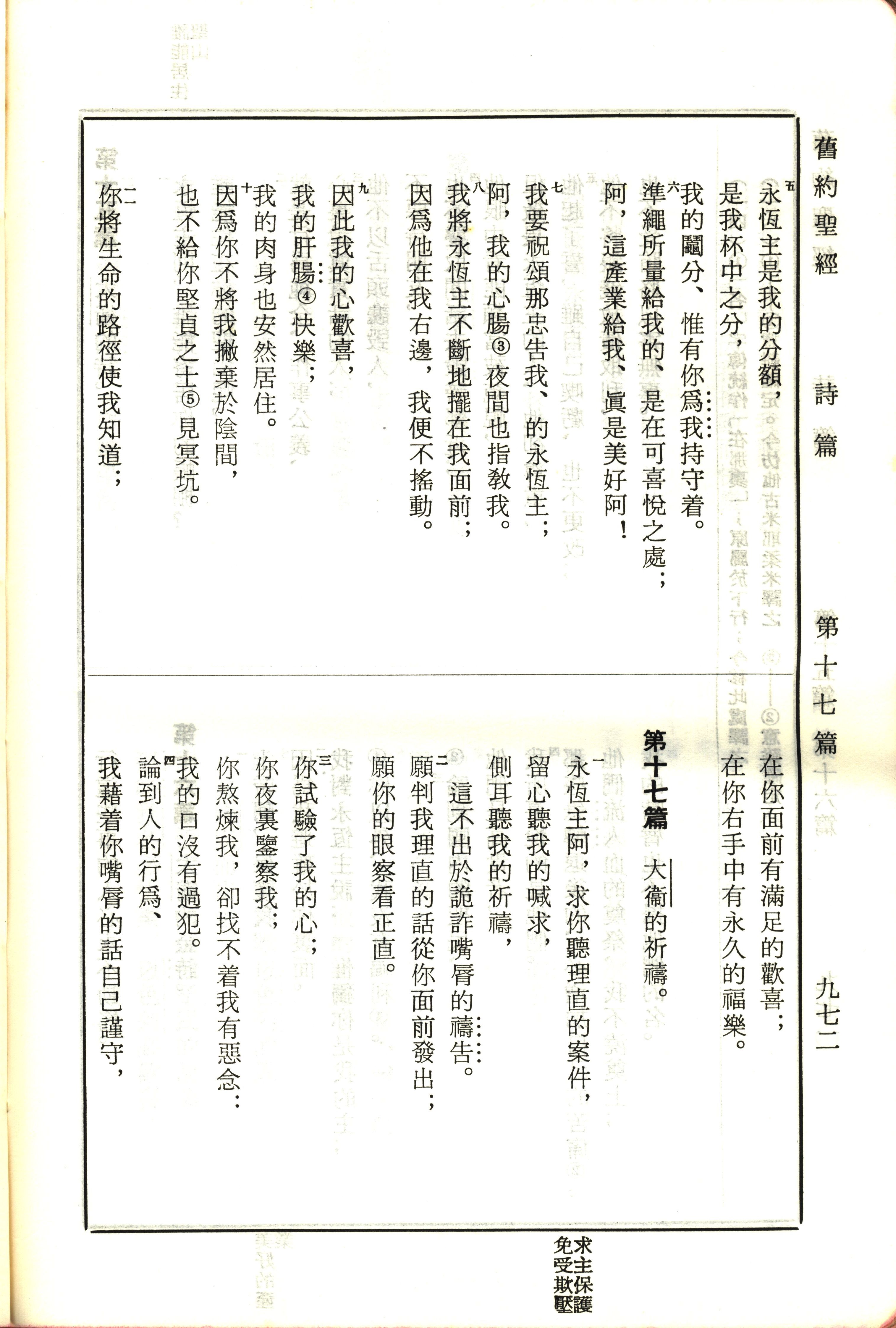 1970年新舊約全書(呂振中譯本) 詩篇 16 章 5 節到 17 章 4 節