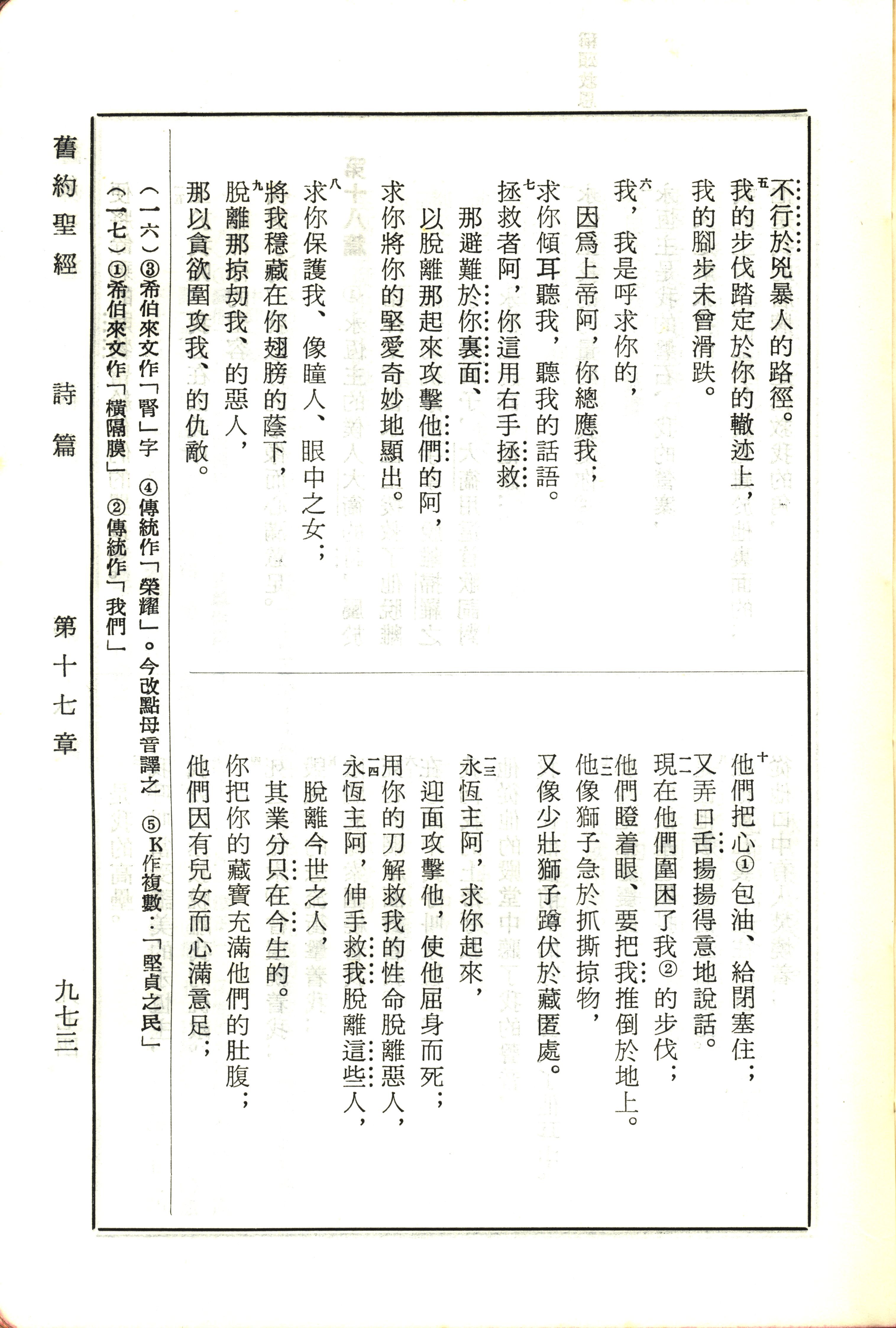 1970年新舊約全書(呂振中譯本) 詩篇 17 章 5 節到 17 章 14 節