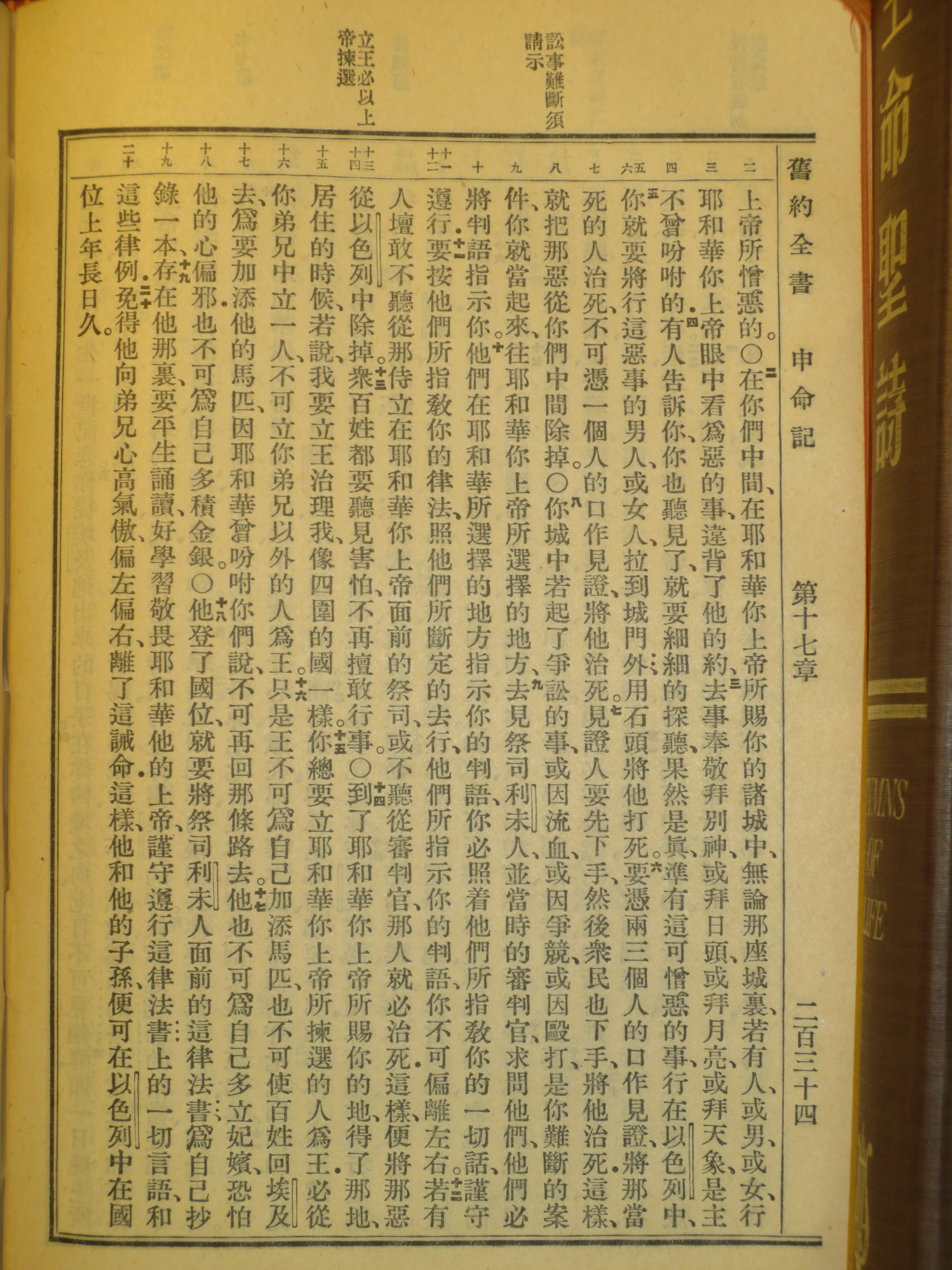 1919年官話和合本 申命記 17 章 2 節到 17 章 20 節