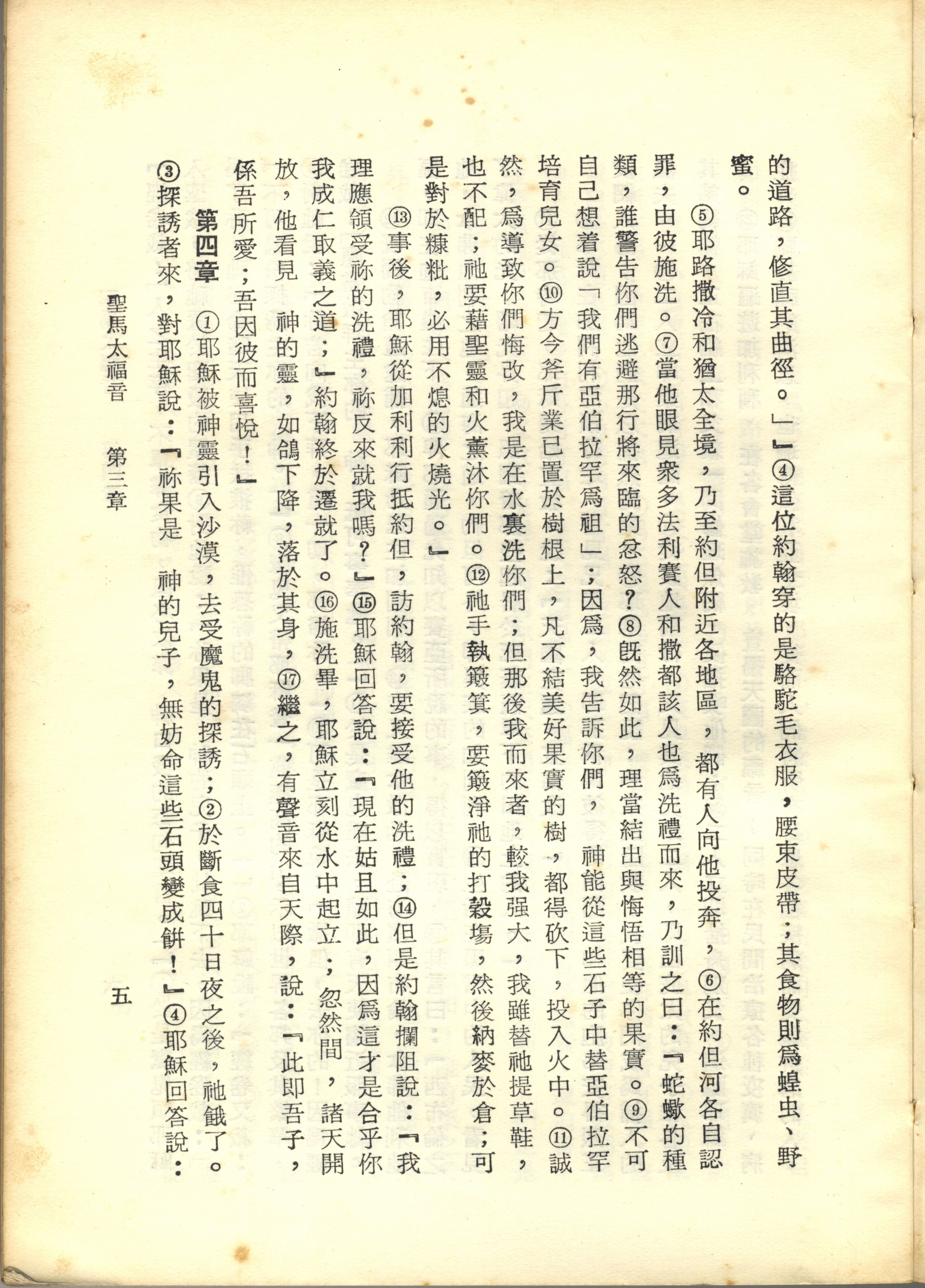 1967年新譯新約全集 馬太福音 3 章 4 節到 4 章 4 節