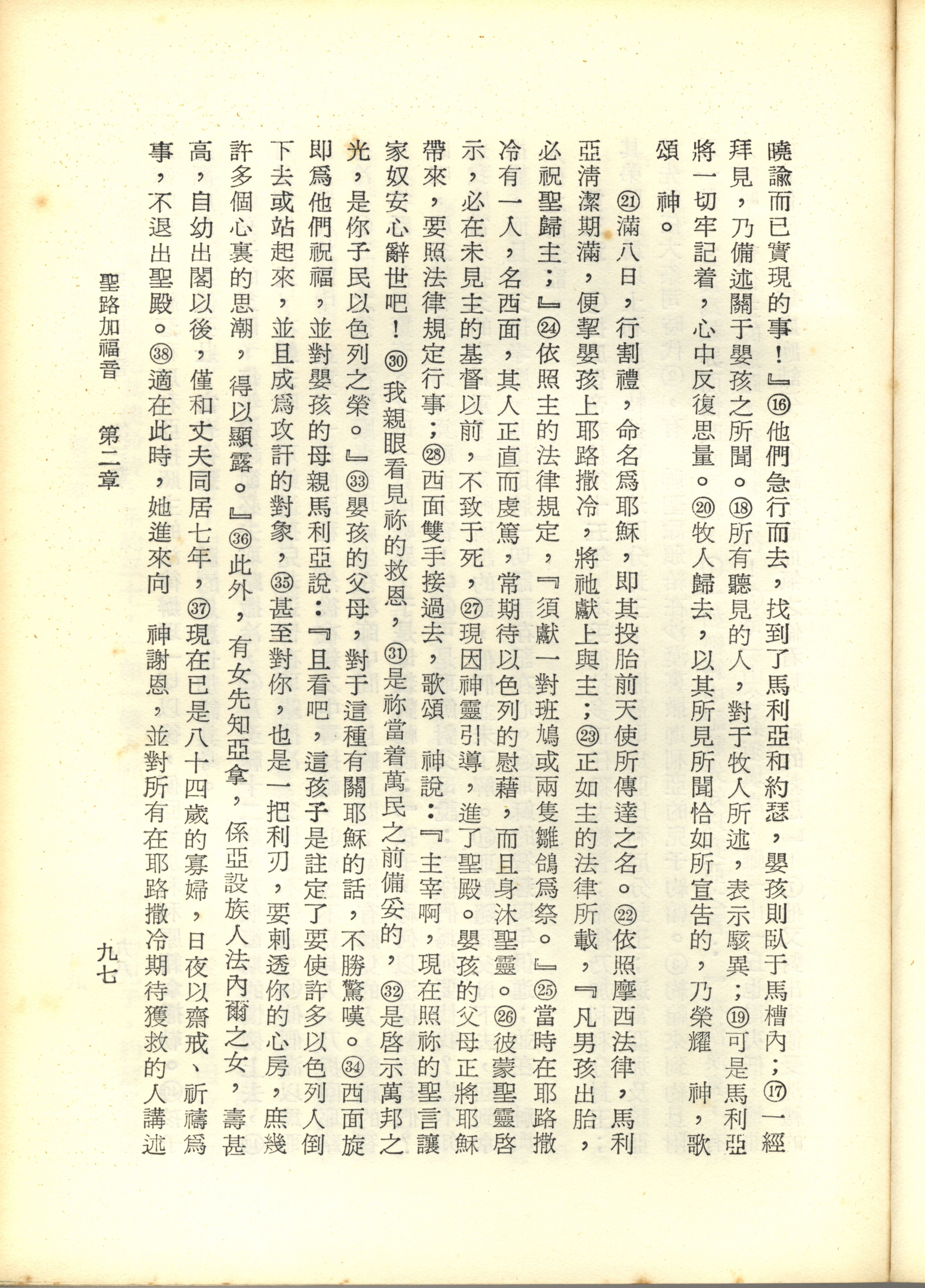 1967年新譯新約全集 路加福音 2 章 16 節到 2 章 38 節